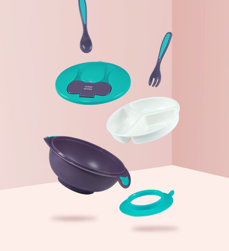 Дизайн: Эргономичная форма приборов и яркие цвета делают процесс кормления веселым и приятным.