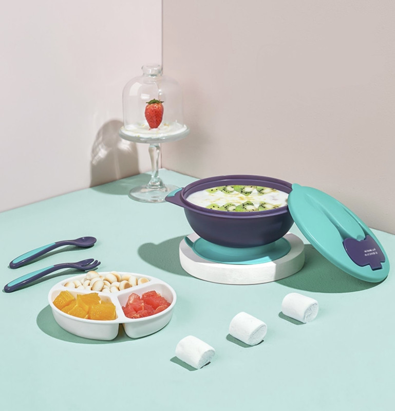 Комплектация: Включает глубокую миску, тарелку с разделителями, ложку, вилку и крышку.