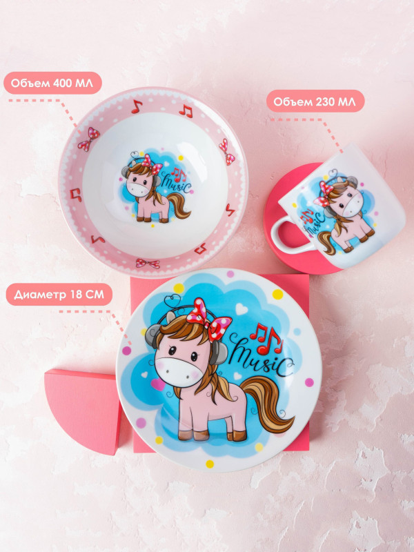 Яркий и милый набор детской посуды Доляна с изображением «Маленькой лошадки» превратит каждый приём пищи в весёлое приключение. Посуда изготовлена из прочной керамики, безопасной для детей, и оформлена устойчивым красочным рисунком.