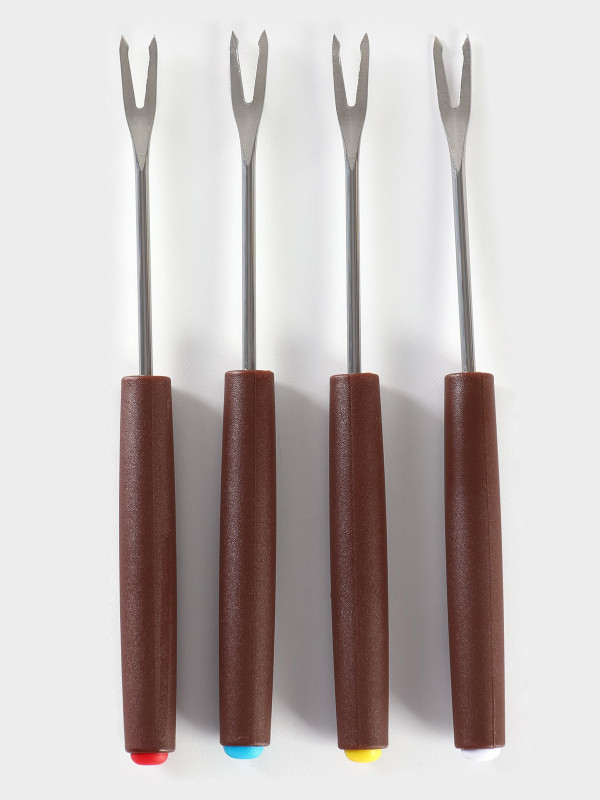 Комплектация: В набор входят керамическая чашка для фондю, 4 шпажки (цветные пластиковые ручки для удобства использования).