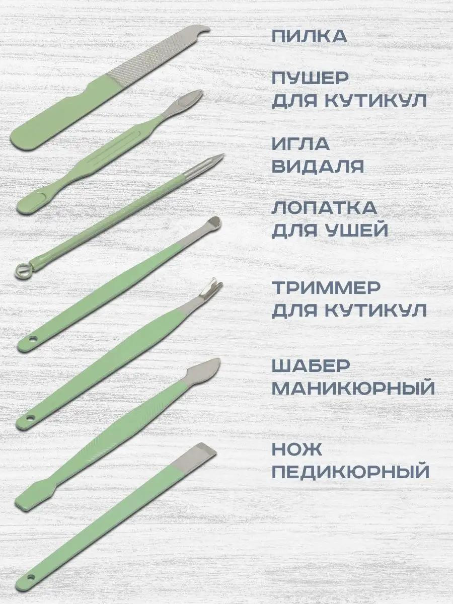 Дополнительная информация Габариты| Комплектация | Чехол из экокожи, Клиппер - 3 шт; Пинцет, Ножницы, Пилка для ногтей; Пушер для кутикул, Игла Видаля; Шабер, Нож педикюрный; Лопатка для ушей, Триммер для кутикул |