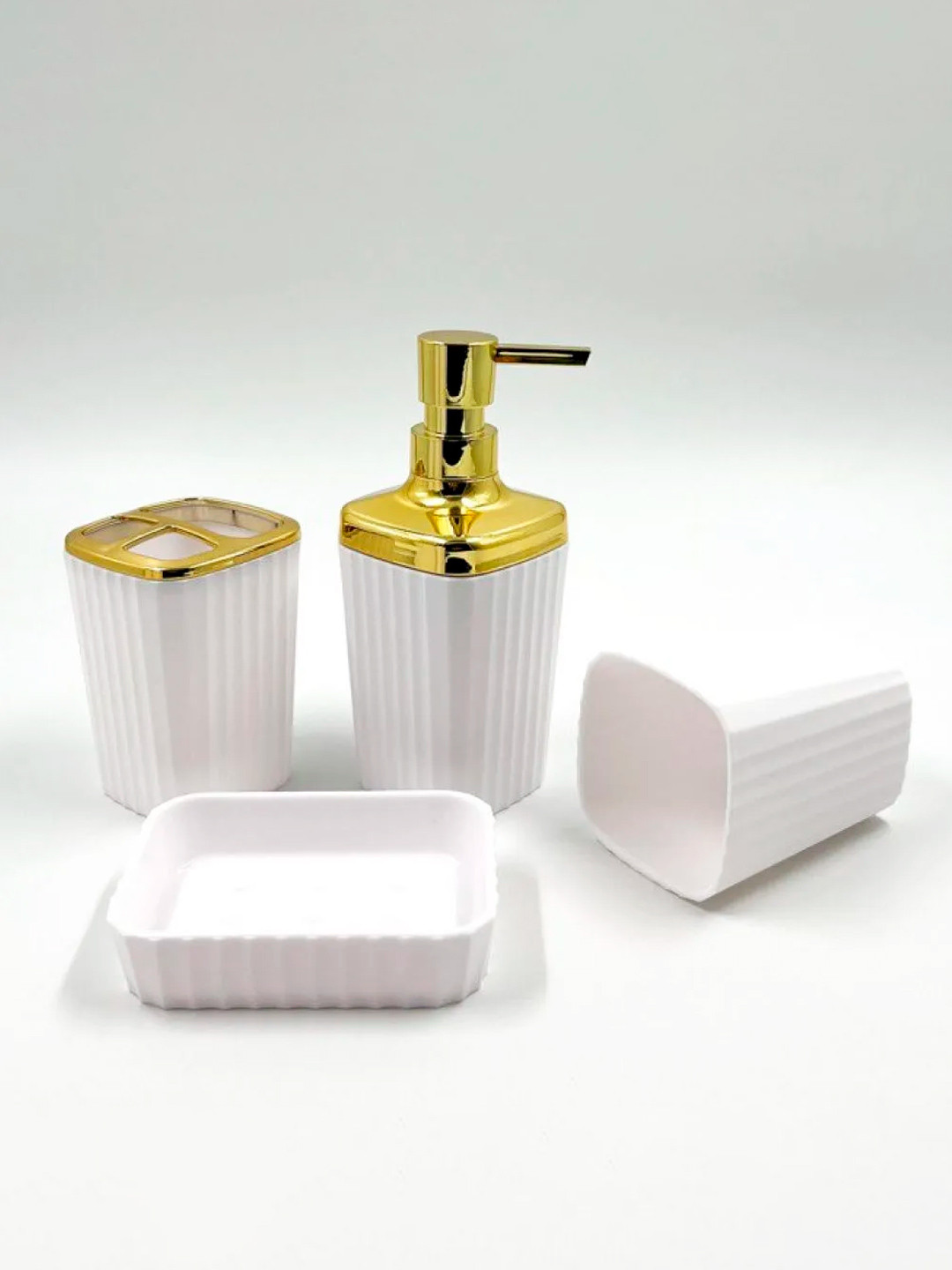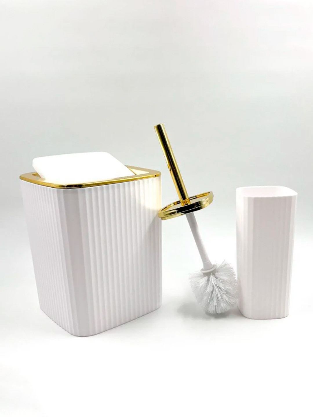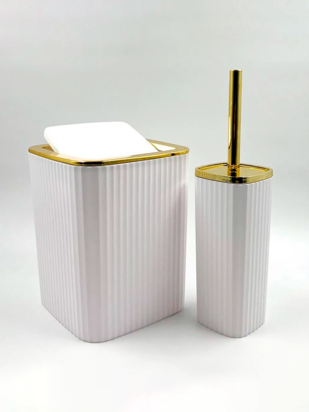 Представляем вам элегантный набор аксессуаров для ванной комнаты и туалета, включающий стакан для зубных щеток, дозатор для мыла, ершик, мыльницу и ведро. Этот набор является идеальным дополнением для вашей ванной комнаты, обеспечивая функциональность и стиль.