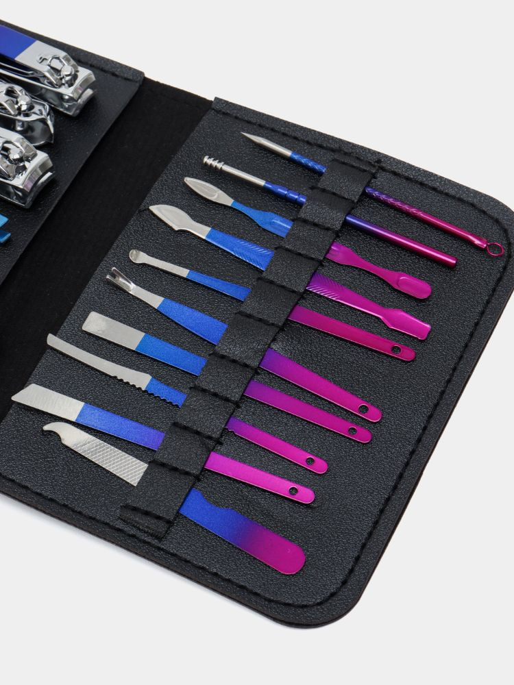 Набор из 16 необходимых инструментов для поддержания Ваших ногтей в идеальном состоянии. Все инструменты остро заточены и изготовлены из нержавеющей стали. Набор упакован в компактный стильный чехол, который удобно брать с собой.