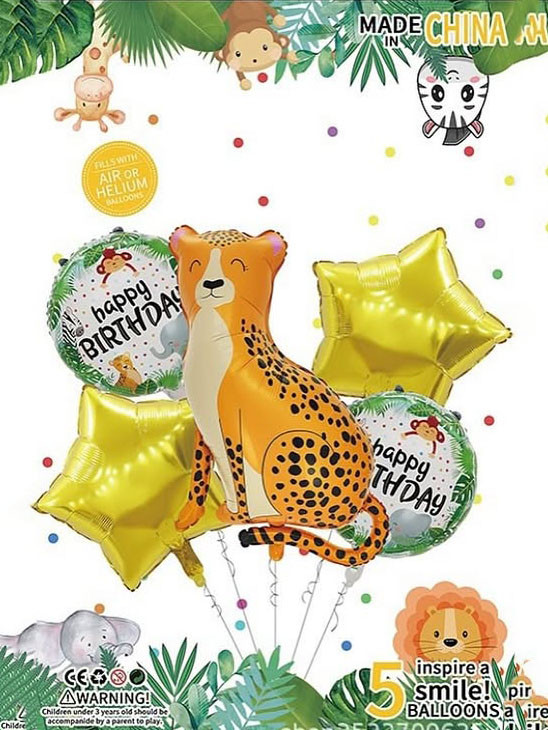 Яркий набор воздушных шаров в стиле "Сафари" идеально подойдет для детского праздника, тематической вечеринки или дня рождения! Милый гепард и леопардовые принты создадут атмосферу настоящего джунглей-приключения.