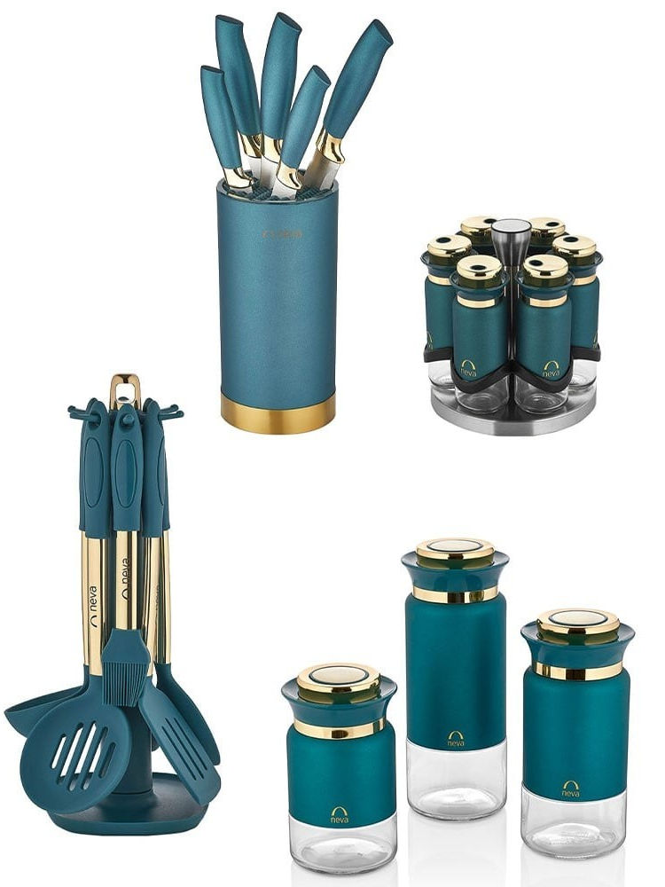 Цвет: ментоловый с золотыми крышками.