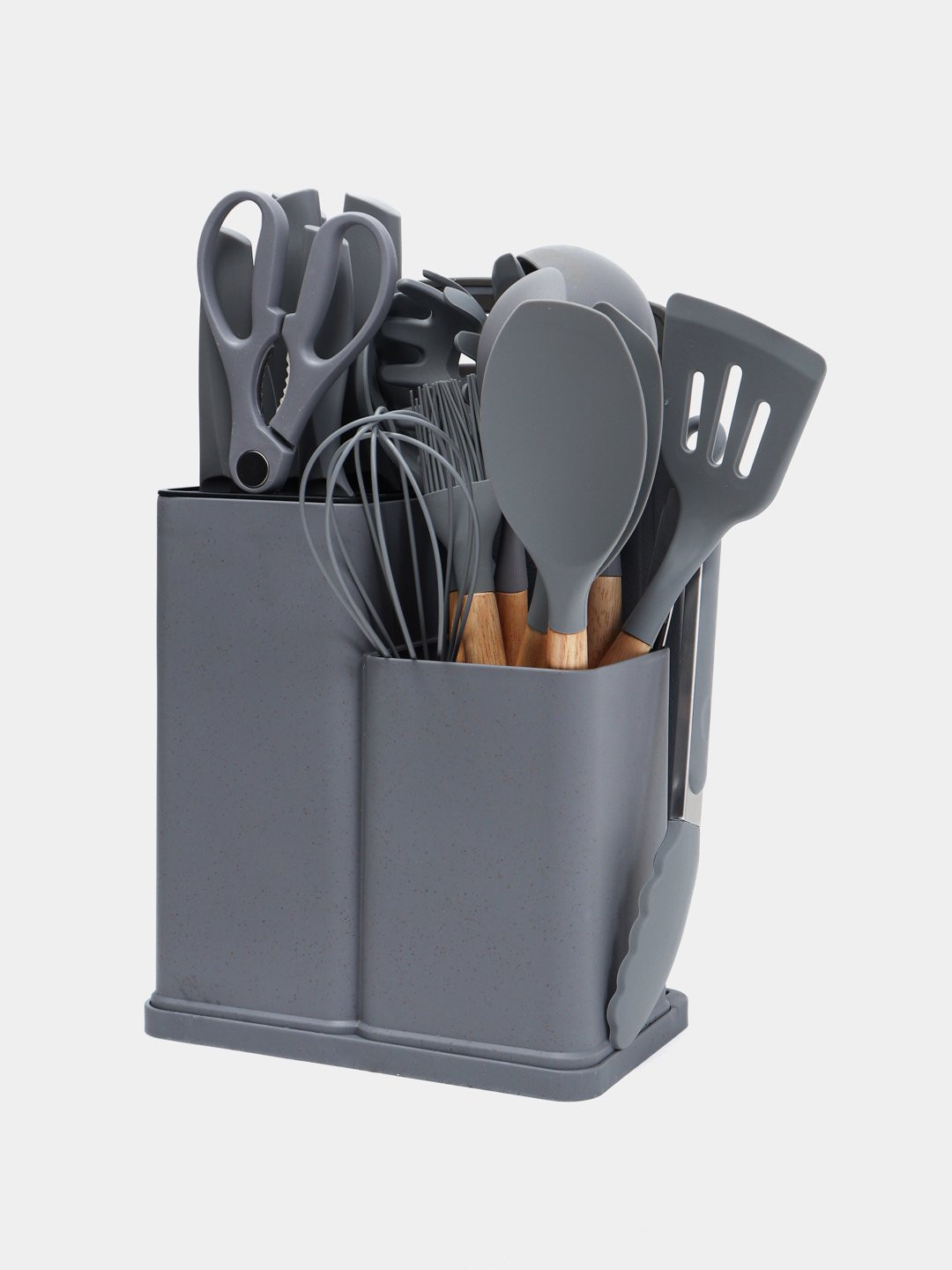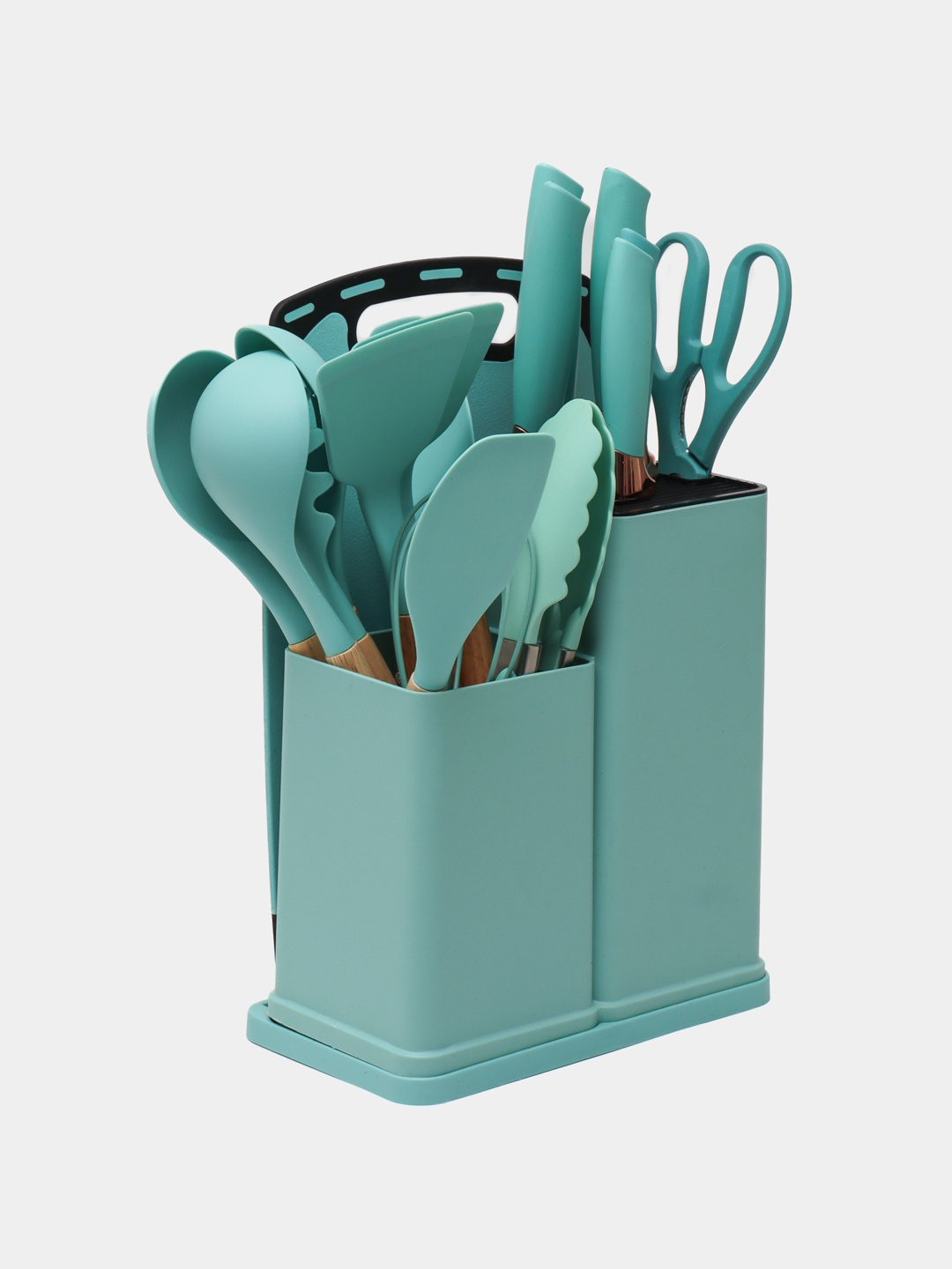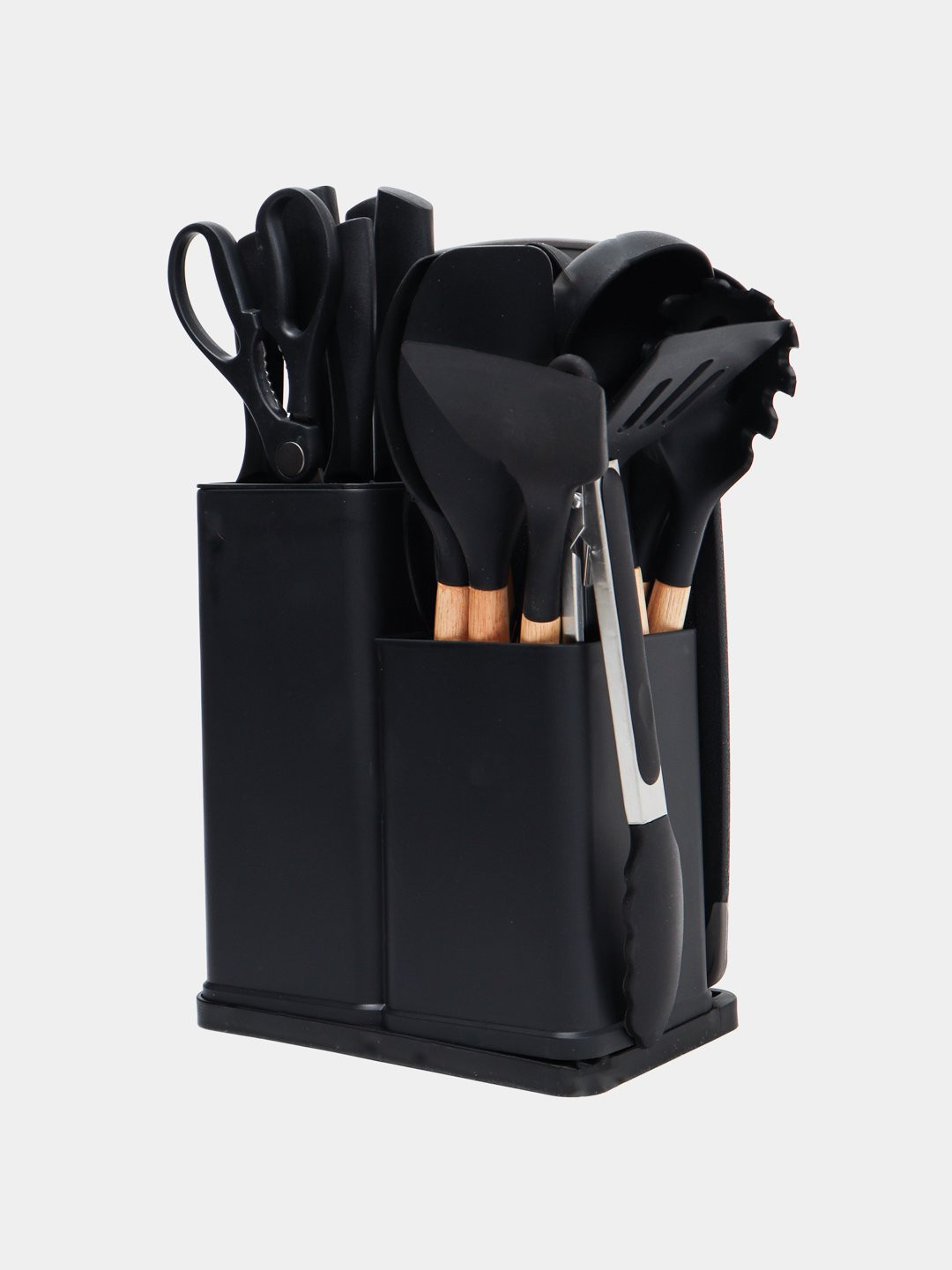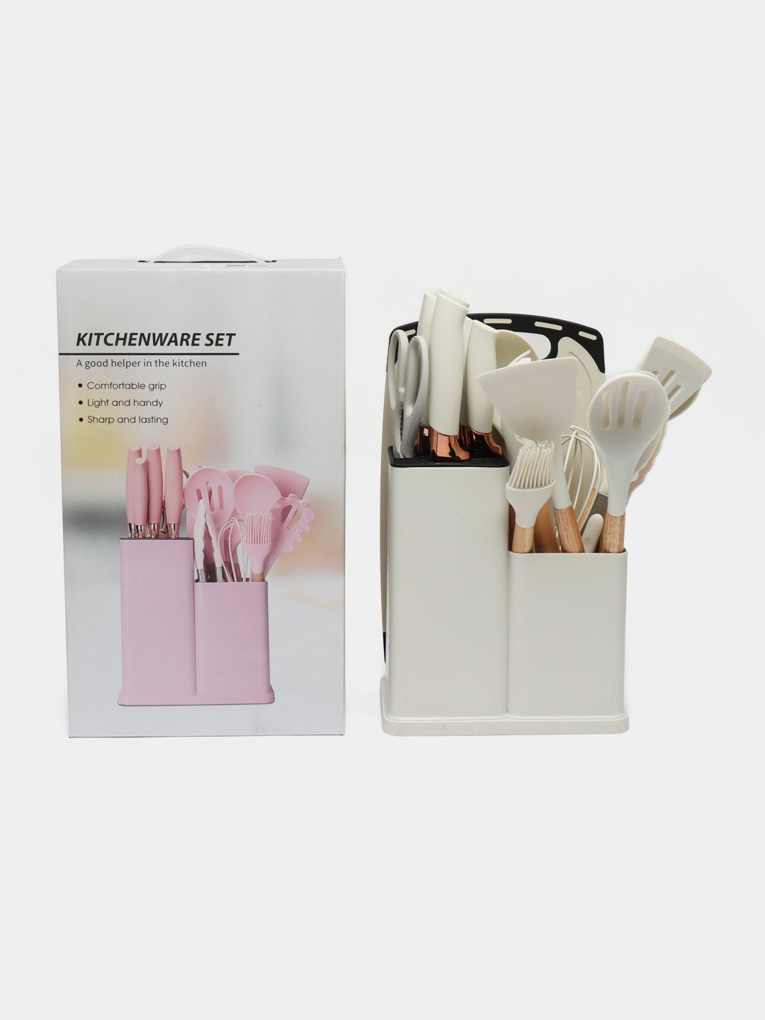 Этот стильный и функциональный кухонный набор из 19 предметов — идеальный помощник для любой хозяйки. В комплекте вы найдете всё необходимое для комфортного приготовления блюд: ножи из нержавеющей стали, кухонные лопатки, венчик, щипцы, ножницы и даже разделочную доску! Эргономичный дизайн, прочные материалы и универсальность делают этот набор отличным выбором для вашей кухни.