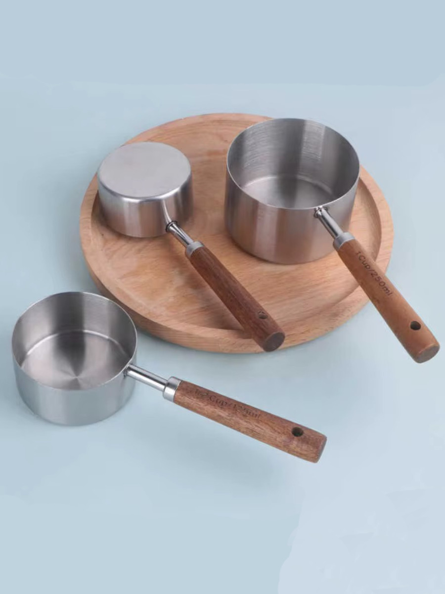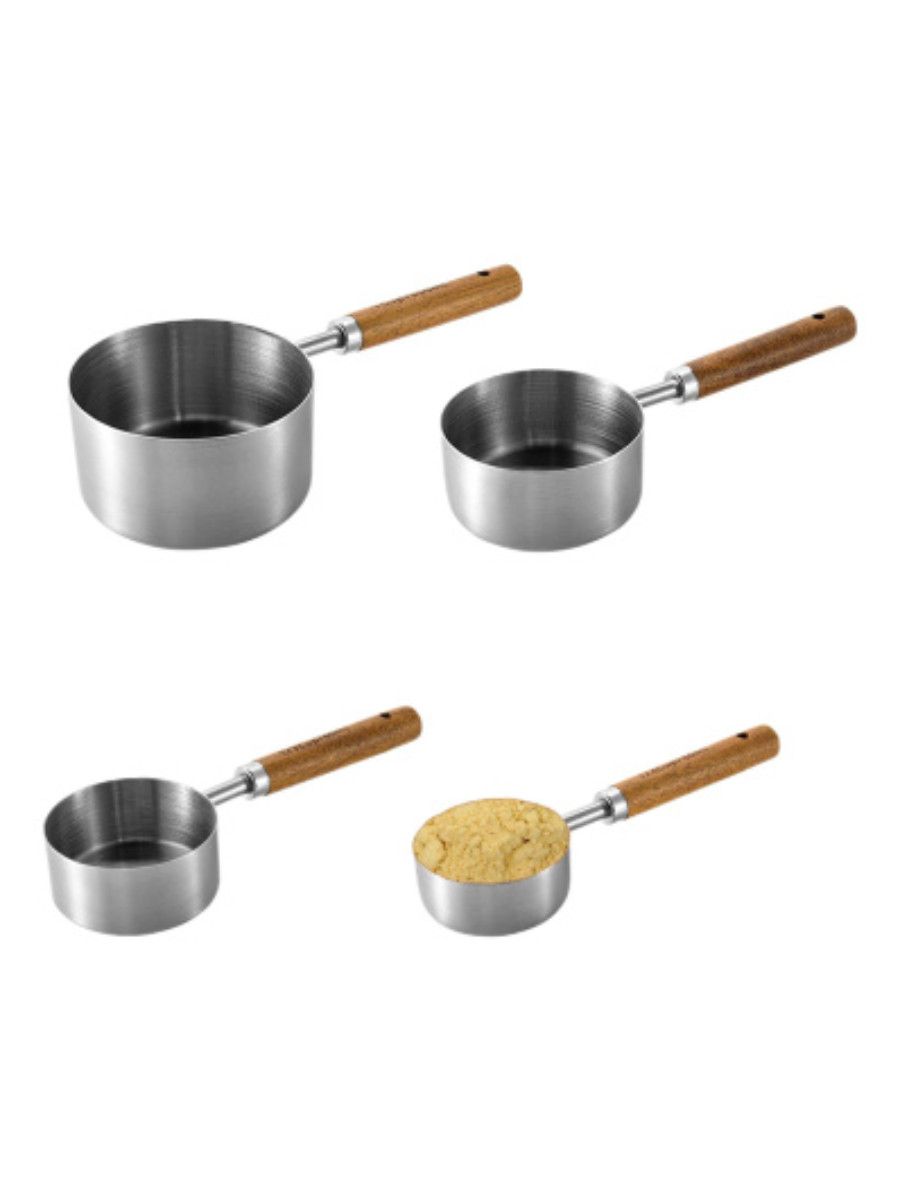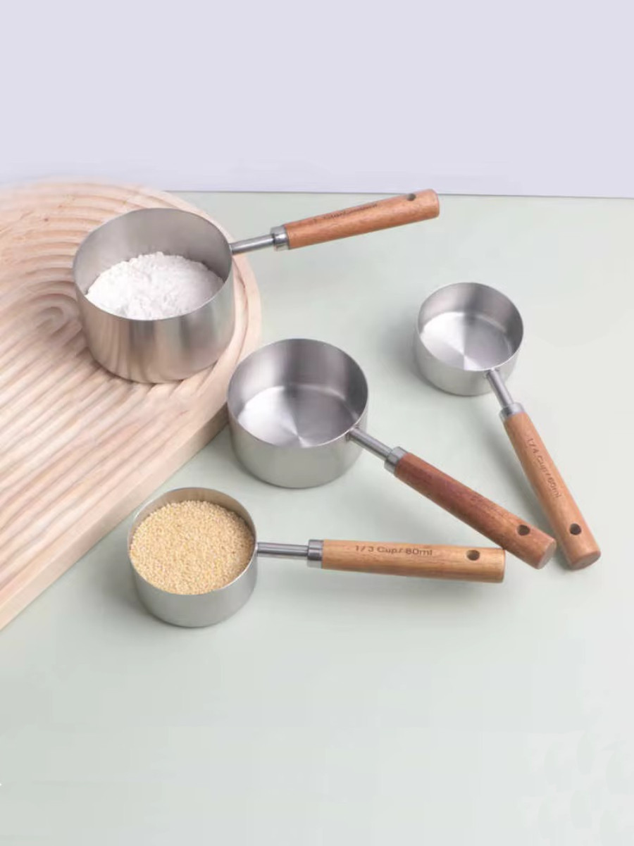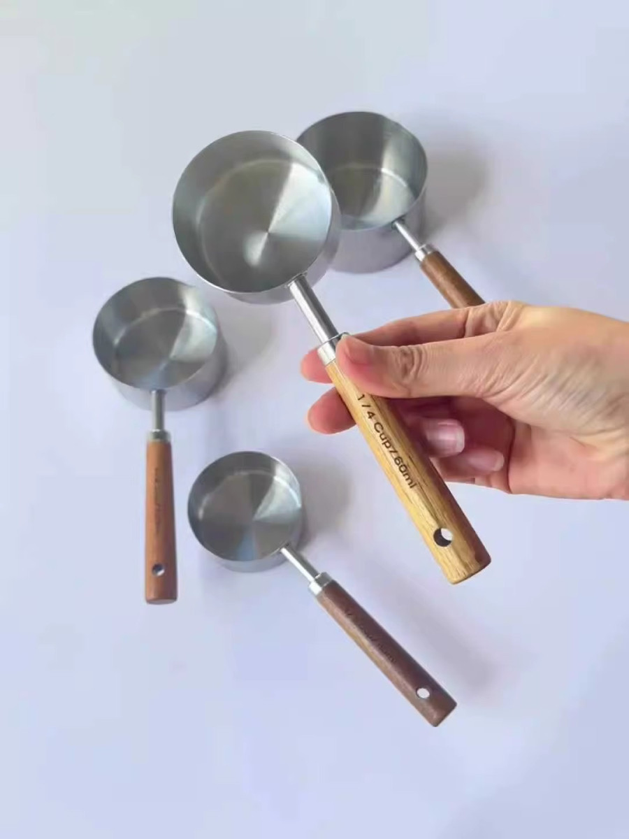 Набор мерных чашек из нержавеющей стали с 4 акациями, с деревянной ручкой, кофейные мерные ложки, инструменты для выпечки с градуированными мерными ложками