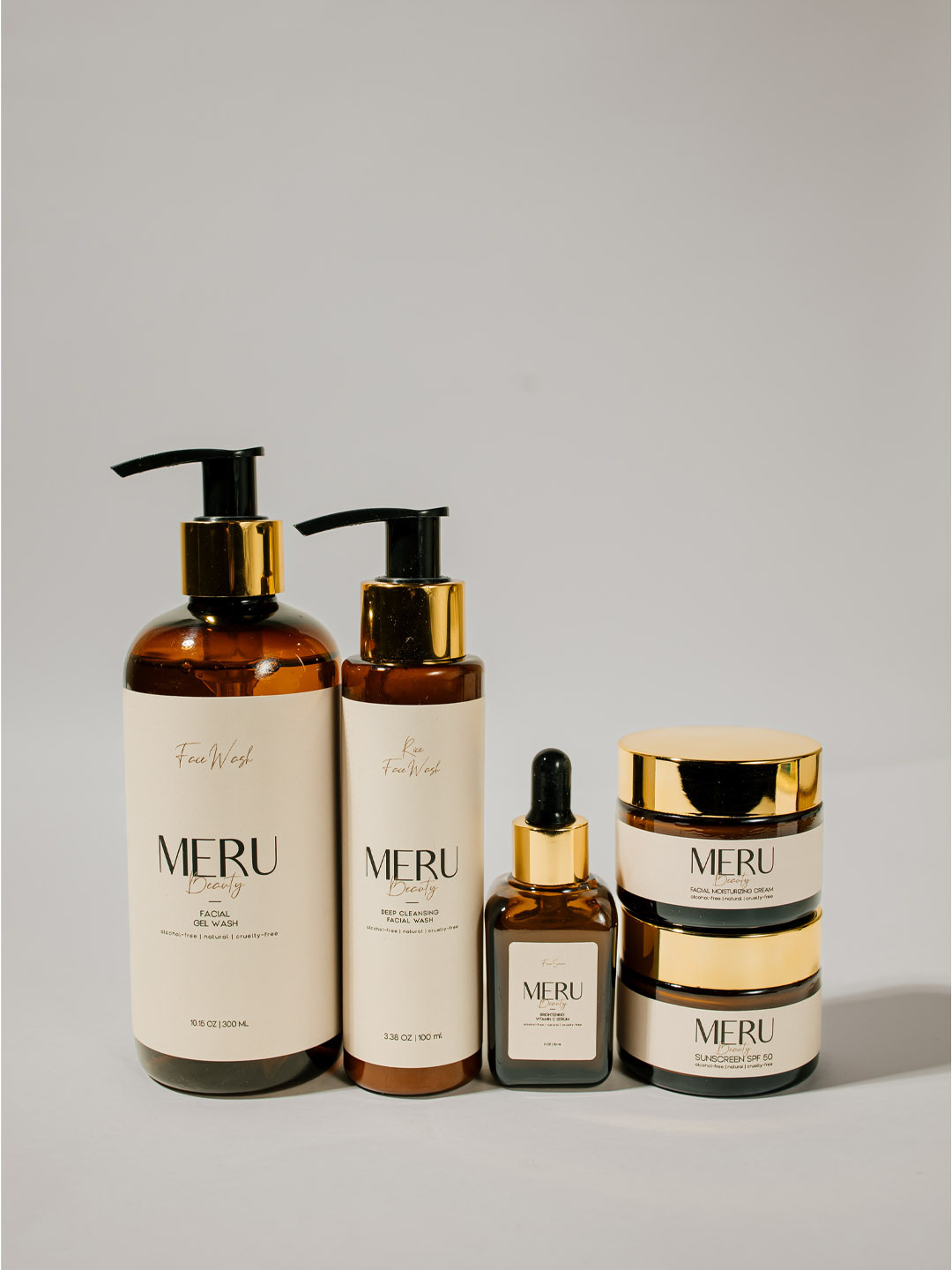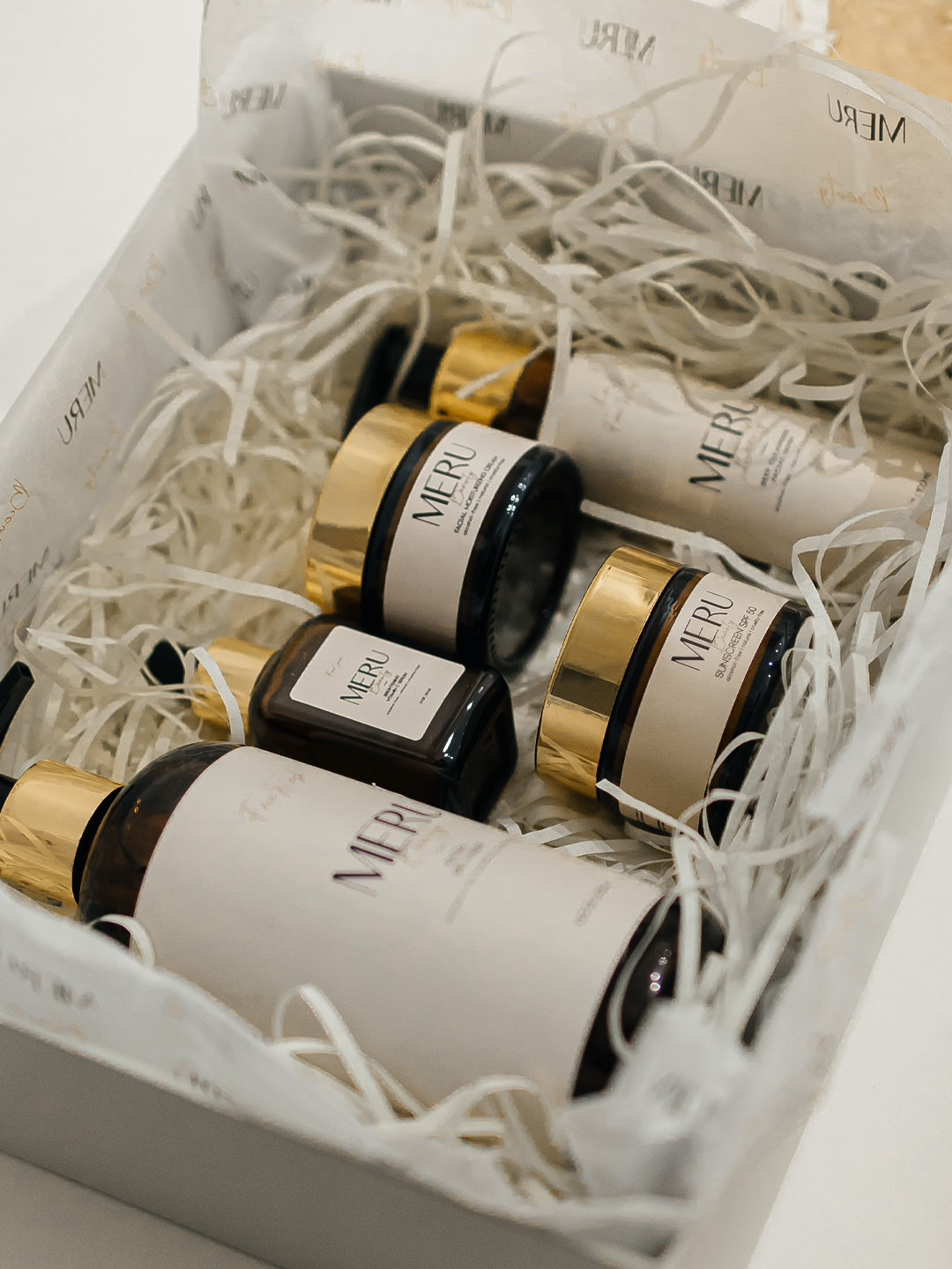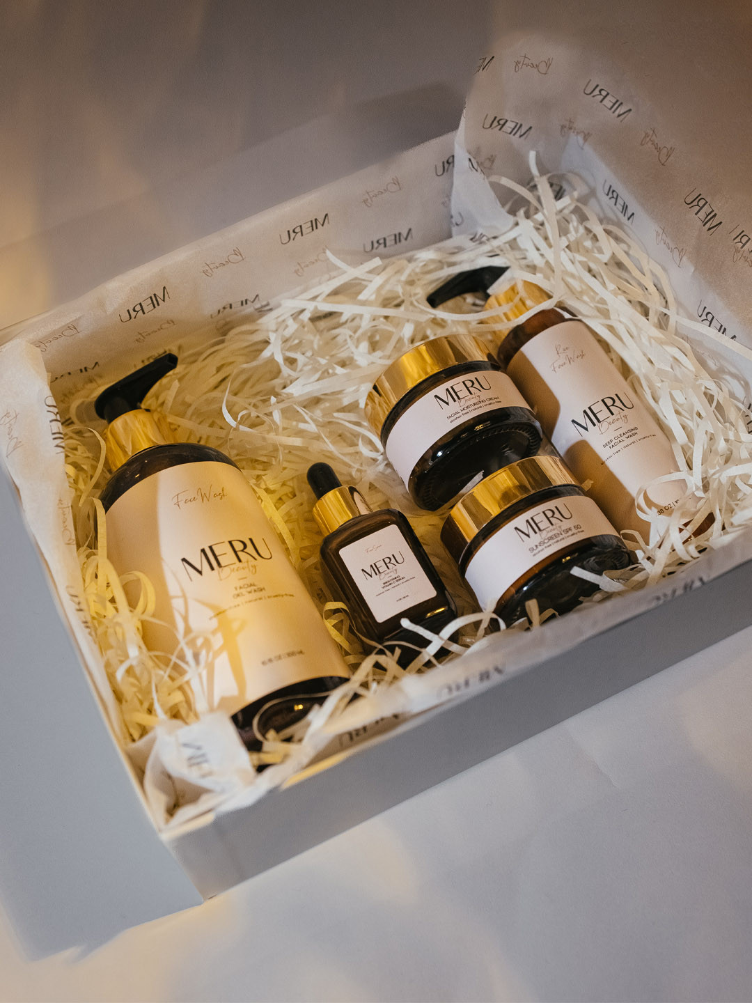 Полный органический уход за кожей в одном наборе. В комплект входят: гель для умывания "Свежесть и очищение" с экстрактом зеленого чая, рисовый скраб "Обновление и питание" с маслом ши, сыворотка с витамином С "Сияние и увлажнение", интенсивно увлажняющий крем с койевой кислотой и солнцезащитный крем SPF 50+. Все продукты созданы Мехрнигор Рустам лично для вас. Меру — қудрати зебоӣ (Meru — сила красоты).