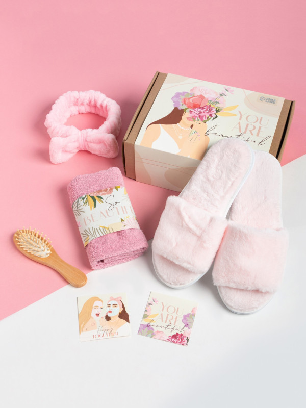 Нежный и заботливый подарок для особенных моментов — подарочный набор Этель "You are beautiful". Внутри — всё для уютного ухода за собой: мягкое полотенце, плюшевые тапочки, повязка для волос и деревянная щётка. Упакован в стильную коробку с иллюстрацией и надписью, поднимающей настроение. Идеален для подруги, сестры или любимой.