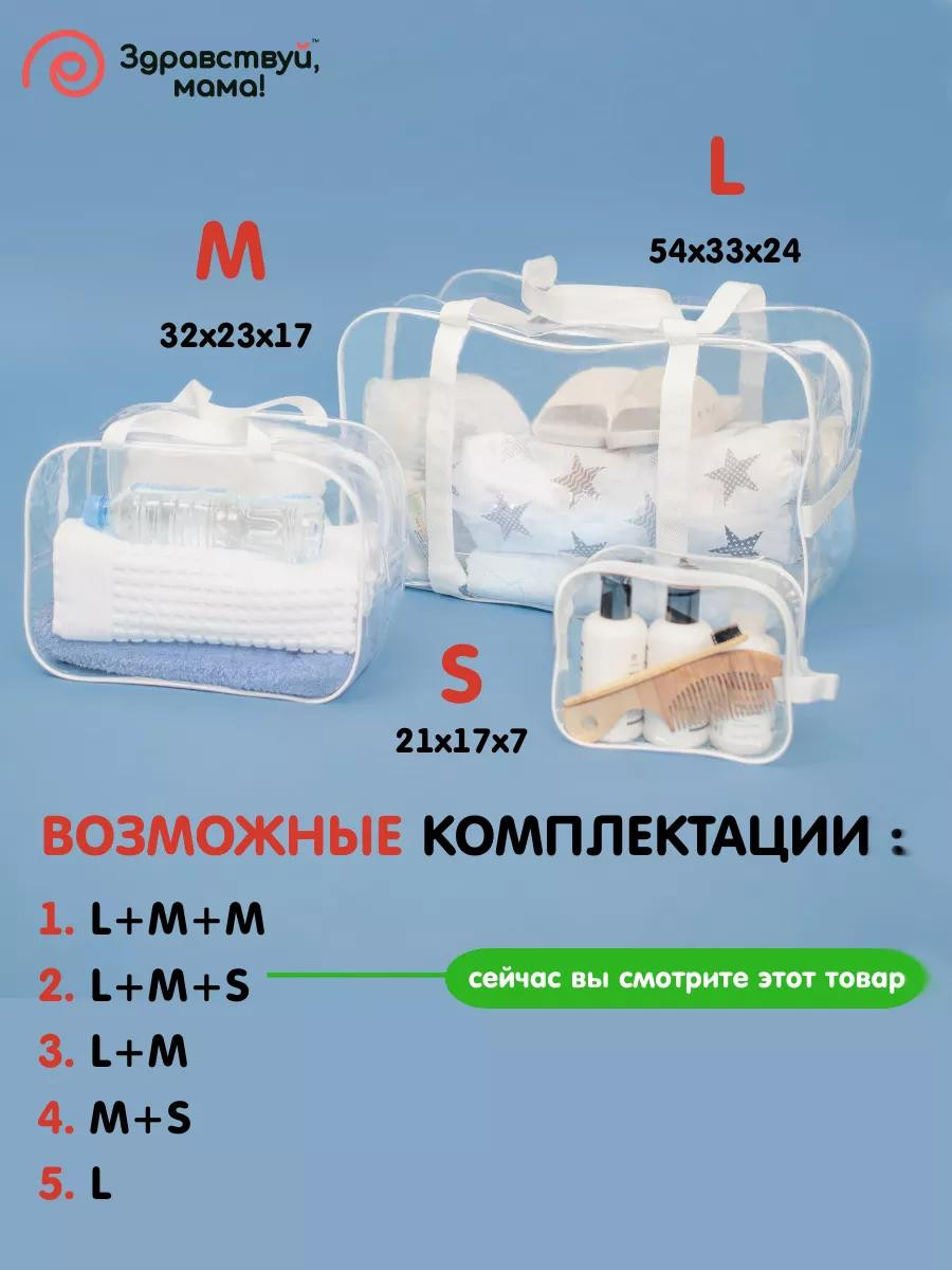 Практичный и надёжный комплект прозрачных сумок — незаменимый аксессуар для будущей мамы. Идеально подходит для сборов в роддом, поездок и хранения вещей.