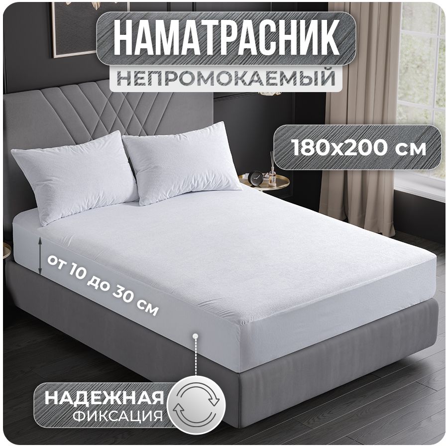 Наматрасник 180х200 см непромокаемый из махрового трикотажа с мембранным покрытием и защитным трикотажным бортиком на резинке по кругу. Водонепроницаемая основа состоит из двух слоев: первый слой – мягкая махровая ткань из 80% хлопка; второй – полиуретановая мембрана (мулетон AQUASTOP). Натяжная простынь создает дополнительный комфорт и послужит надежной защитой от обильного воздействия влаги и механических повреждений, продлевая срок службы и защищая от пятен матрас диван, или кровать - случайно пролитая жидкость не попадет на мотрас или мебель. Прекрасно задерживает пыль и грязь. Микропористая структура мембраны обладает способностью пропускать воздух и не создает парникового эффекта. Топпер мягкий водоотталкивающий 180 на 200 имеет бортик 25 см ( 200х25 ) который выполнен из эластичного материла он легко натягивается и надежно фиксируется за счет резинки по всему периметру. Мягкая приятная ткань, бесшумная, на ней простыня не скользит, не комкается, не электризуется, а также не покрывается катышками и при стирке не дает усадку. Непромокаемая простыня обладает гипоаллергенными и антибактериальными свойствами, плотностью 160 г/м2. Плотная постельная принадлежность - модель безопасная для всей семьи.