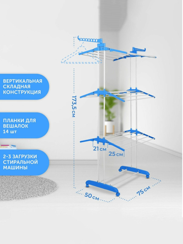 Многофункциональная 3-ярусная сушилка для белья и одежды