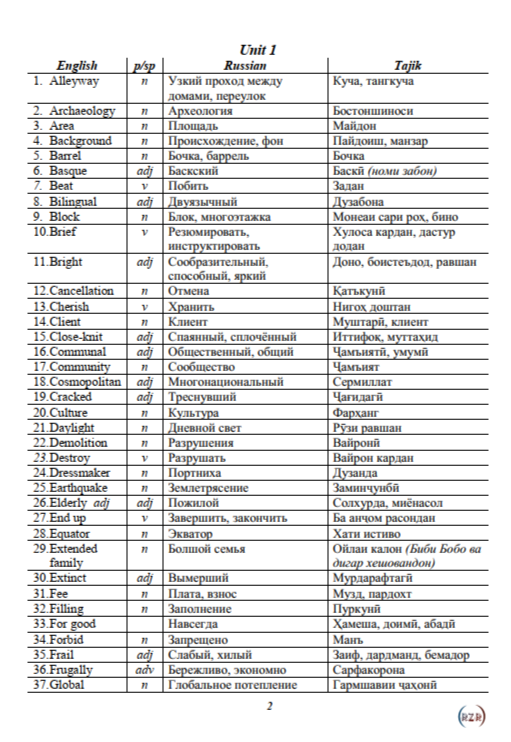 Учебное пособие для изучения английского языка на уровне Intermediate. Содержит тематический словарь с переводом на русский и таджикский языки, примеры употребления слов в предложениях и упражнения для расширения словарного запаса.