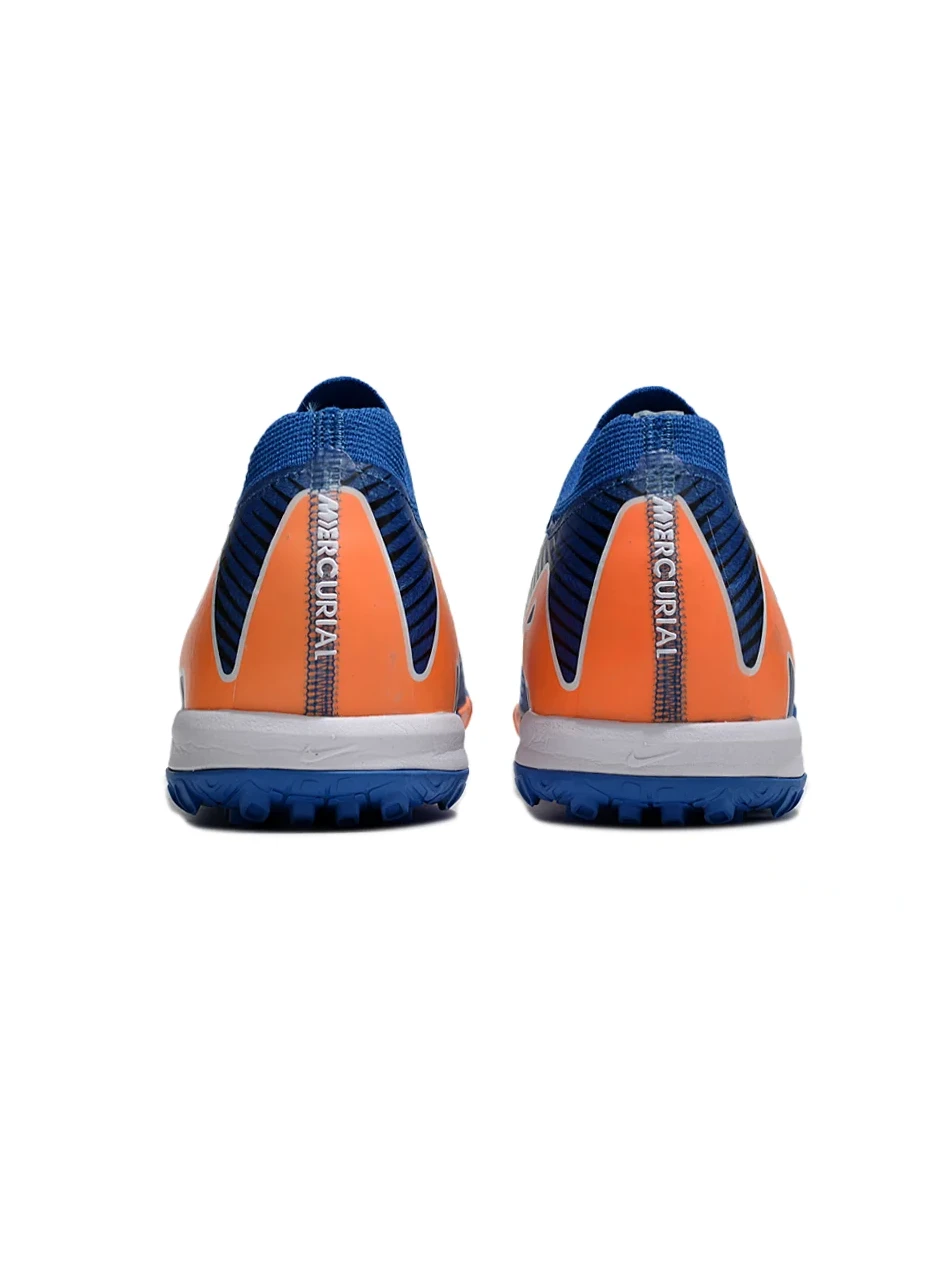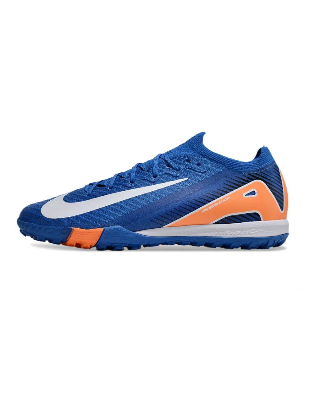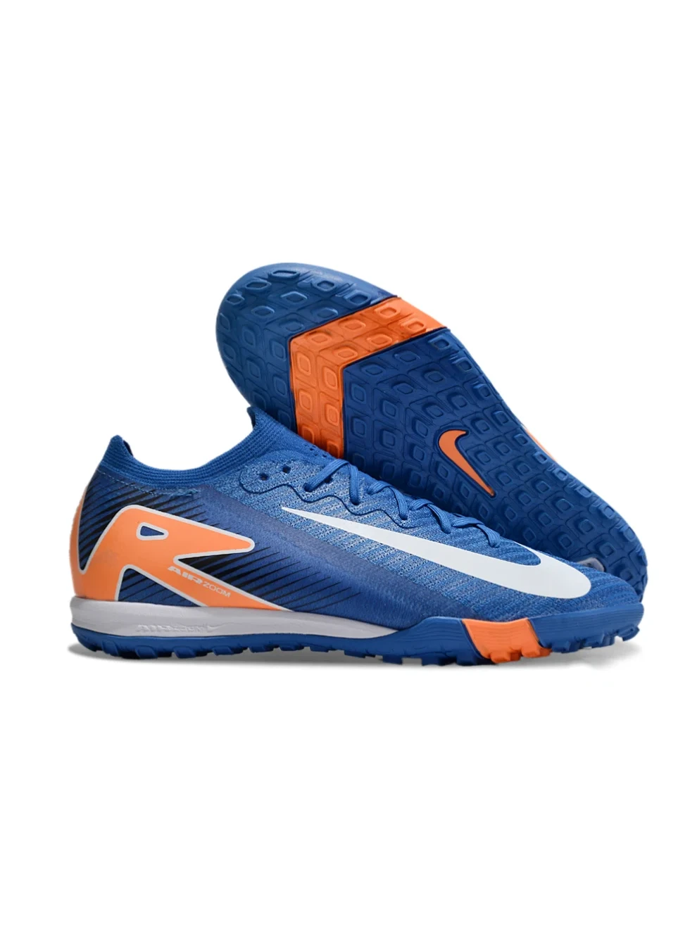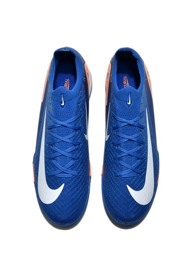Эти сороконожки поражают смелым сочетанием цветов – насыщенный синий верх дополняется акцентами белого и оранжевого, создавая динамичный и спортивный облик. Крупный Swoosh на носке и мощный логотип Air Zoom на пятке подчеркивают элитный статус модели.