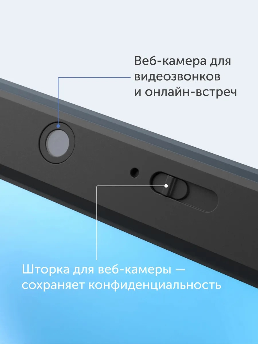 Доп. опции ноутбука Kensington замок; шторка веб-камеры; встроенный микрофон