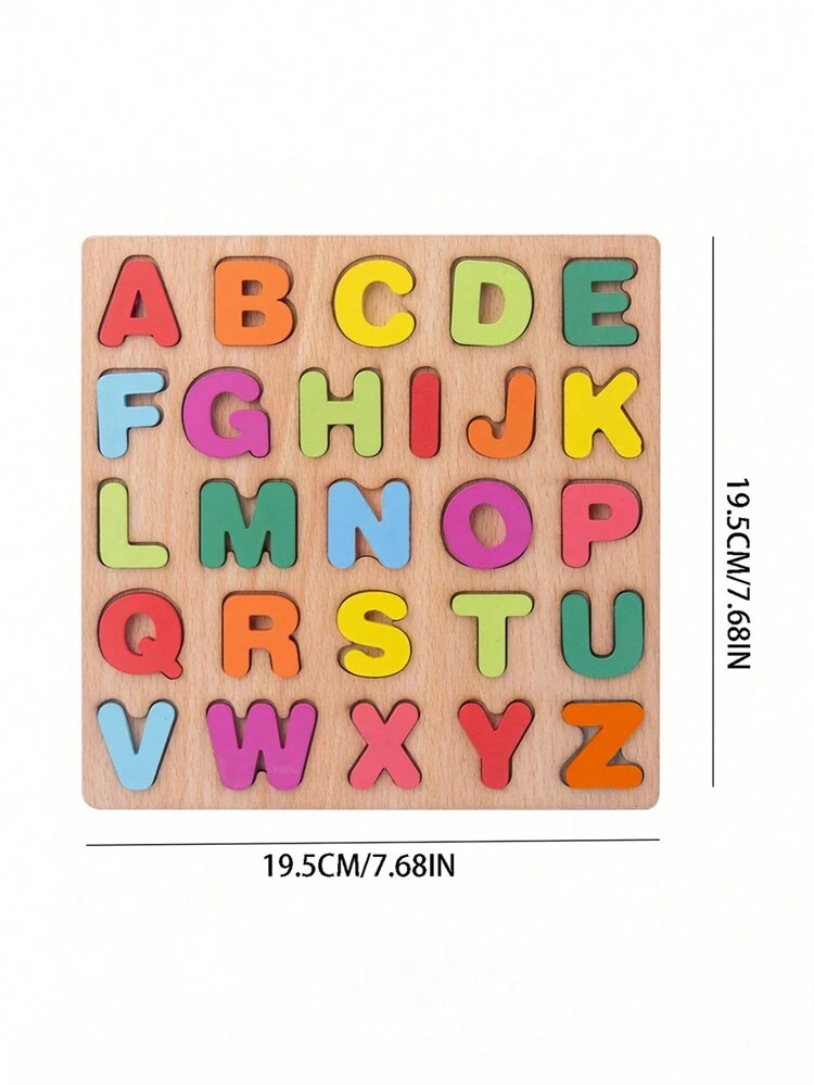 Развивающая игрушка из натурального дерева с яркими цветными буквами английского алфавита. Каждая буква вынимается и вставляется в соответствующее углубление на планшете, что помогает ребенку выучить алфавит, развить моторику, логику и зрительную память. Размер планшета: 19.5 × 19.5 см.