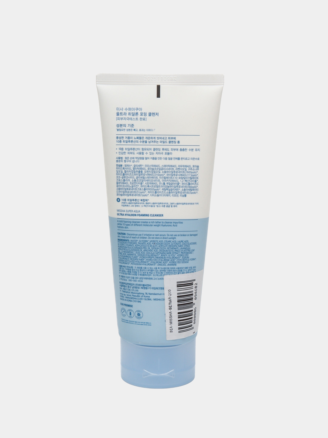 Обогащенная гиалуроновой кислотой очищающая пенка Super Aqua Cleansing Foam быстро уберет загрязнения и вернет коже эластичность и мягкость. Формула сыворотки сделана на основе 10-ти видов гиалуроновой кислоты, которые обладают разной молекулярной массой, что позволяет более мелким молекулам проникать глубже в кожу и обеспечивать глубокой увлажнение на разных слоях эпидермиса.