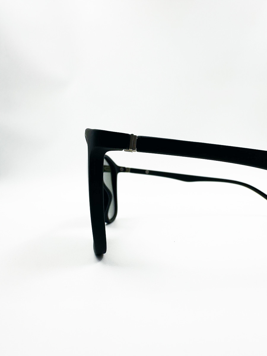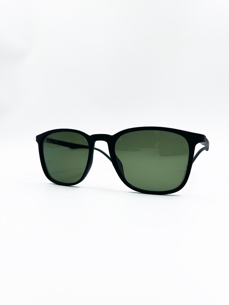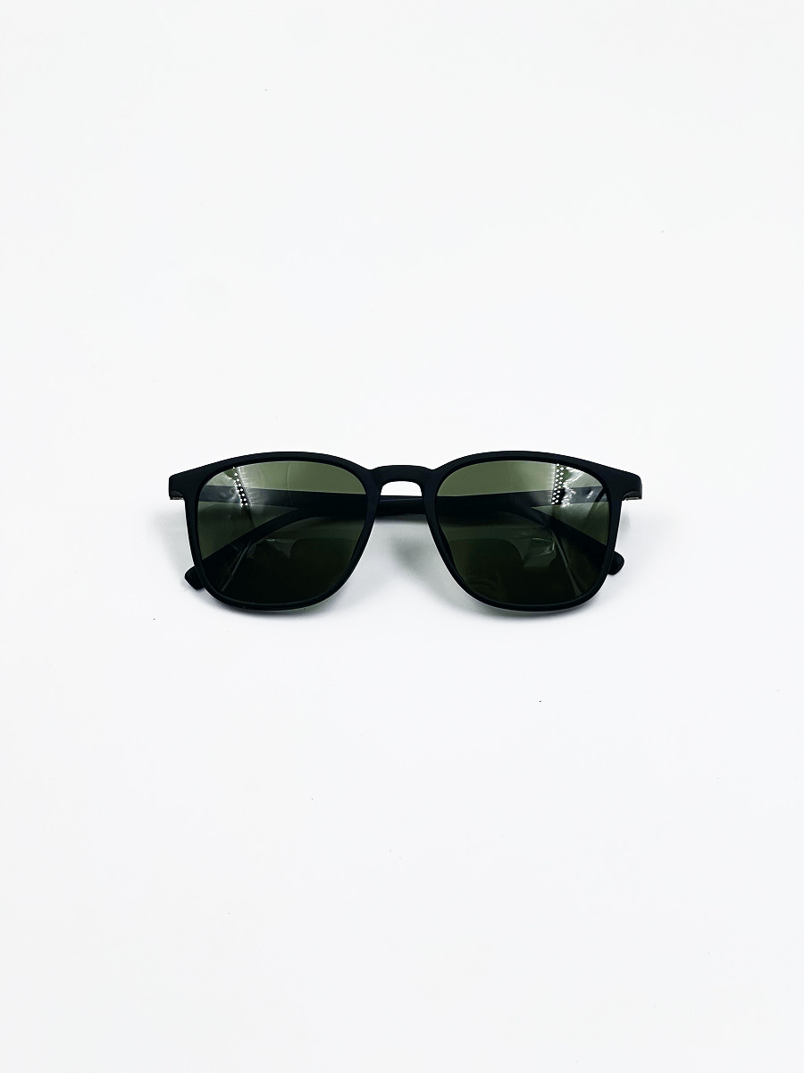 Эти универсальные солнцезащитные очки сочетают минимализм и функциональность. Модель выполнена в матовой чёрной оправе средней толщины с классической формой линз. Зелёные затемнённые стёкла обеспечивают надёжную защиту от солнечного света и придают образу стильную сдержанность. Отличный выбор для повседневной носки и путешествий.