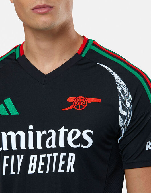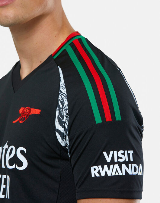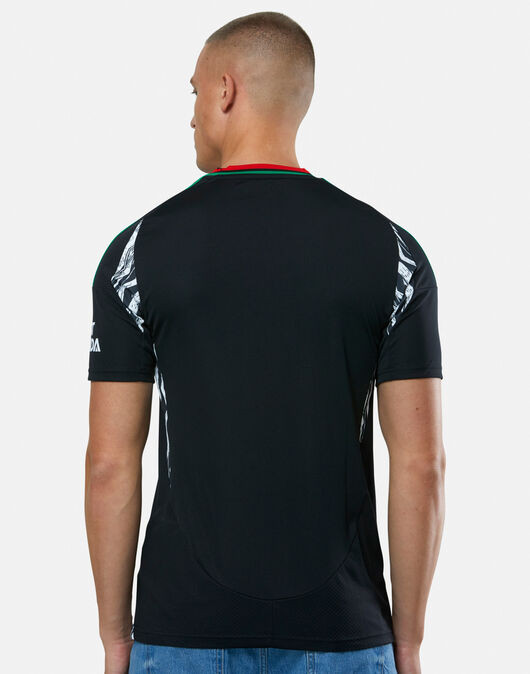 Черный цвет с яркими зелёно-красными полосками на плечах – дань уважения африканскому наследию команды. Уникальные узоры на боках символизируют единство и силу болельщиков по всему миру.