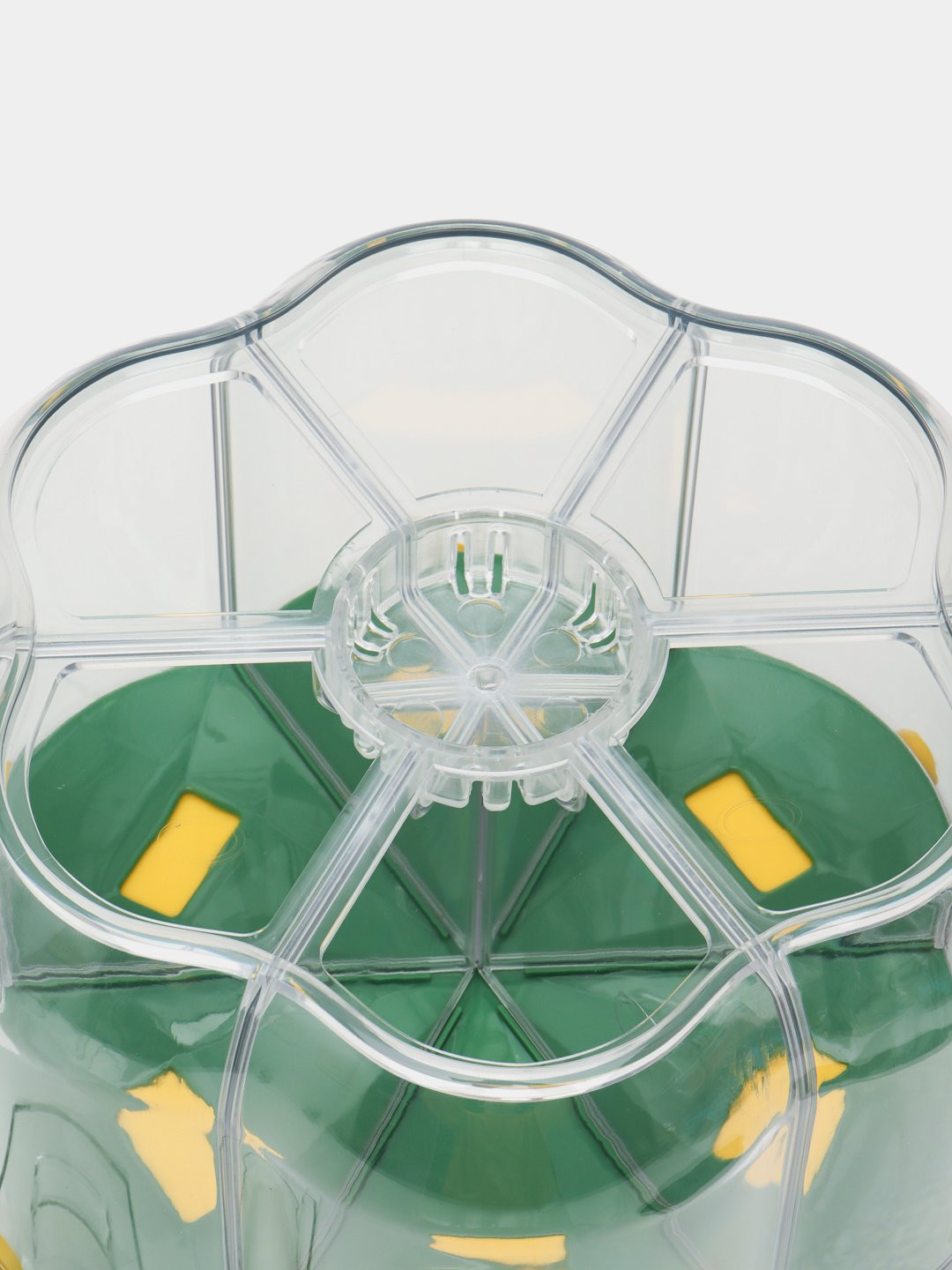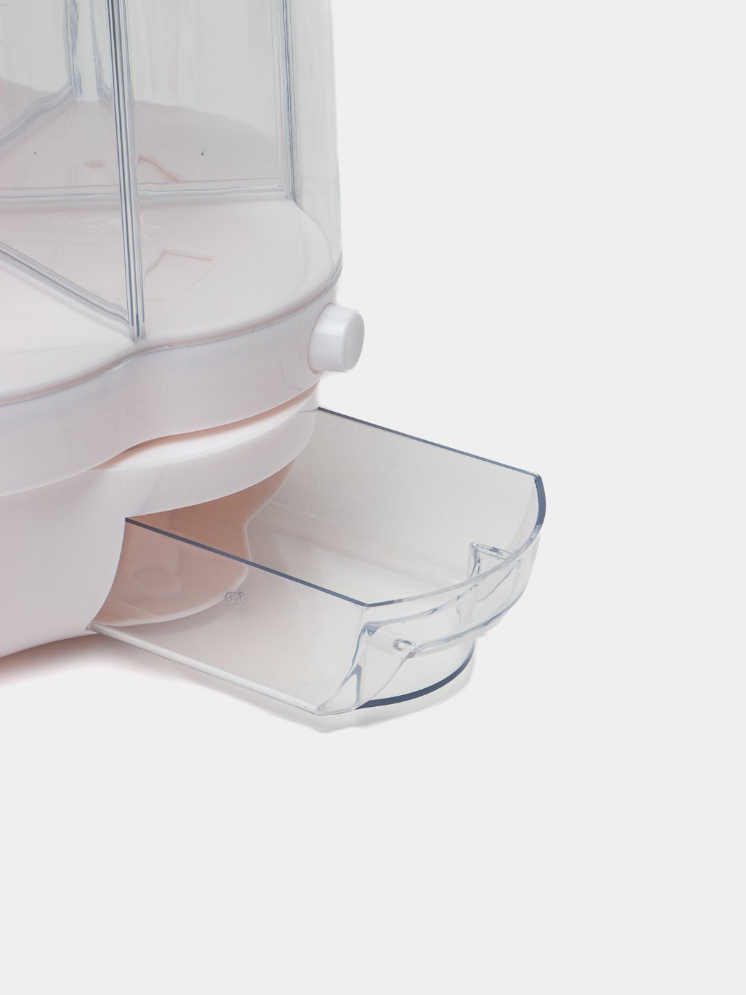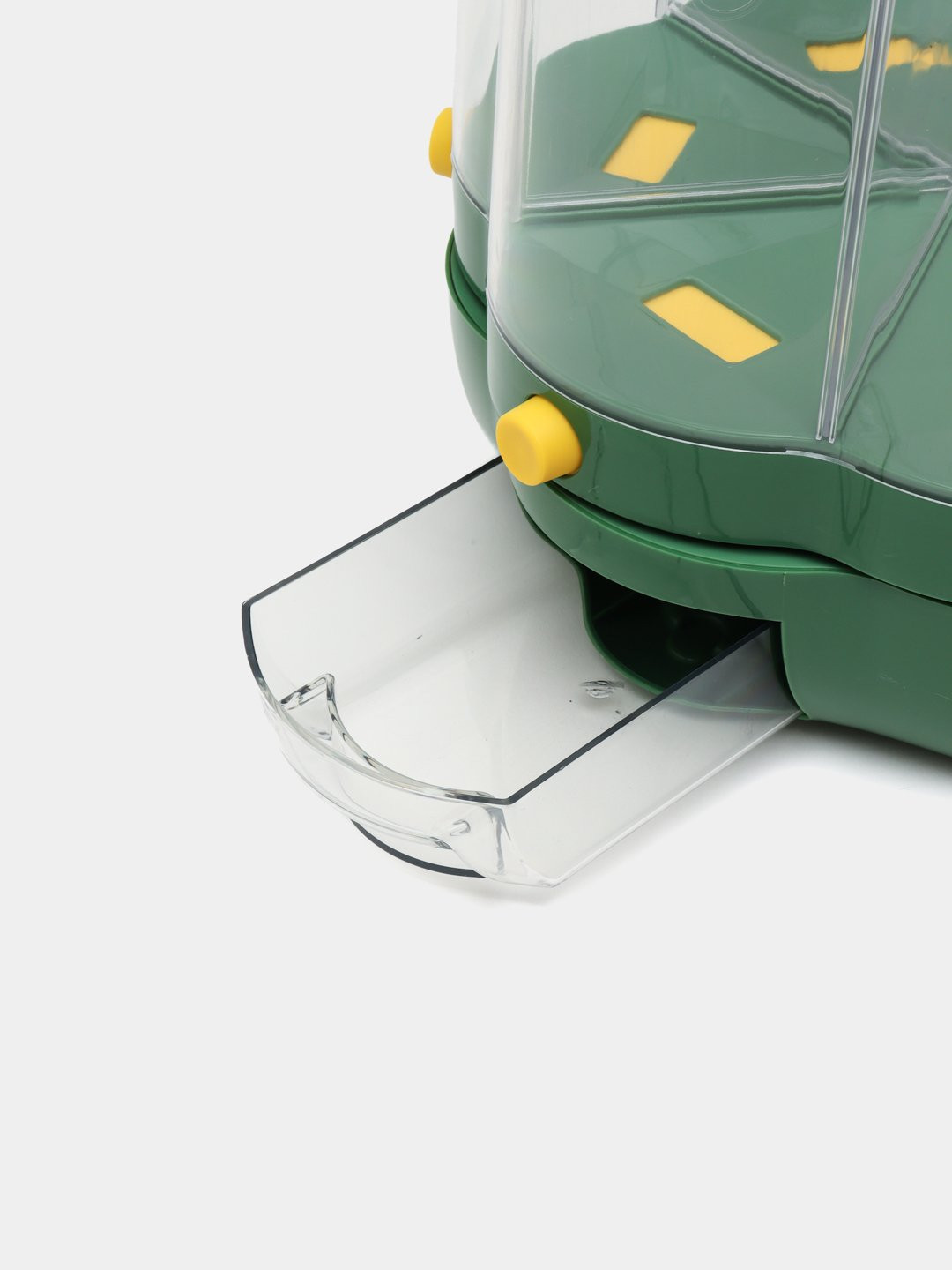 Кухонный диспенсер для сыпучих продуктов имеет шесть секций. Благодаря прозрачному корпусу Вы всегда сможете контролировать наполнение емкости для круп. Данный контейнер не займёт много места на Вашей кухне. Вы с лёгкостью сможете разместить его на столе, стене или же в шкафу. Диспенсер для сыпучих изготовлен из экологически чистого полипропилена, нетоксичный, прочный, что позволит оставаться Вашим продуктам сухими и под надёжной защитой от насекомых. Контейнер для сыпучих продуктов прост в использовании. Установите органайзер пластиковый в удобном Вам месте, засыпьте продукты по контейнерам и, нажимая кнопку под нужным продуктом, заполните мерную емкость, контролируя требуемый объём. Контейнеры для хранения организуют Вам порядок на кухне.