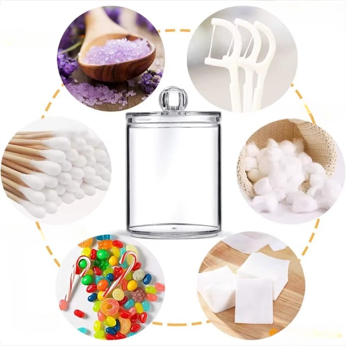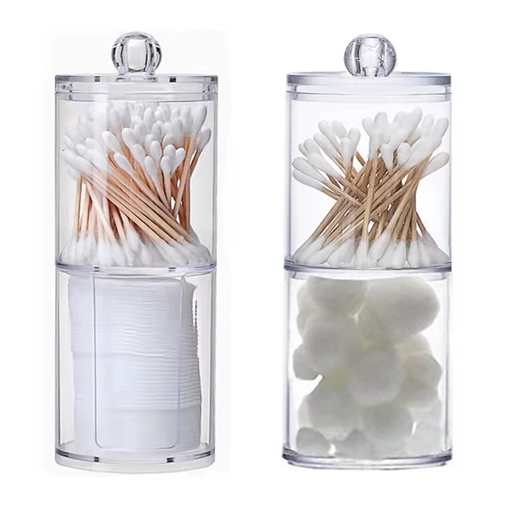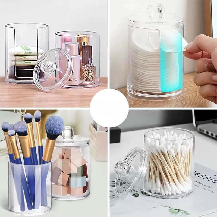 Удобный и стильный органайзер для хранения ватных дисков, ушных палочек, кистей для макияжа и других мелочей. Изготовлен из прозрачного материала, что позволяет легко видеть содержимое и поддерживать порядок.