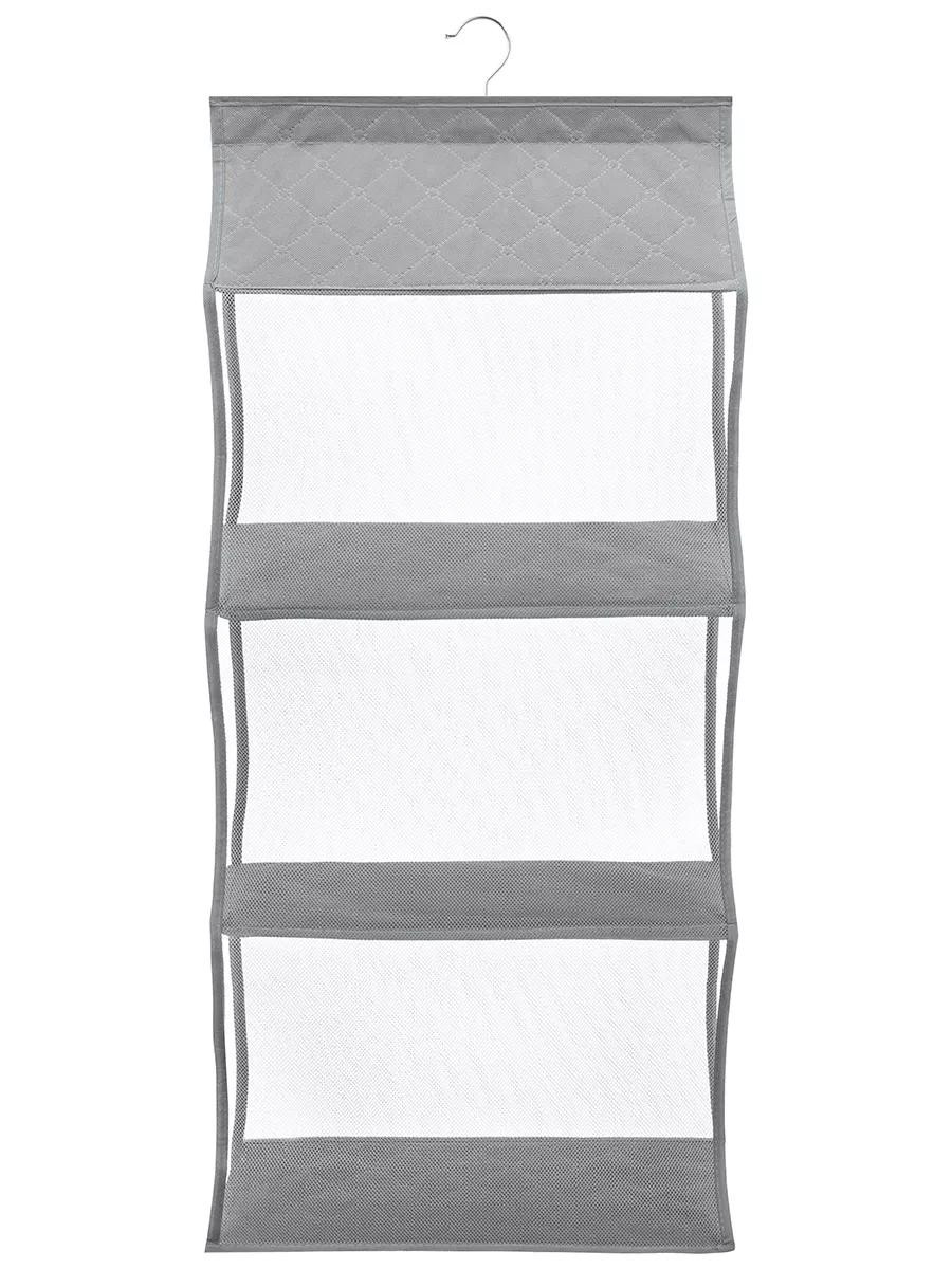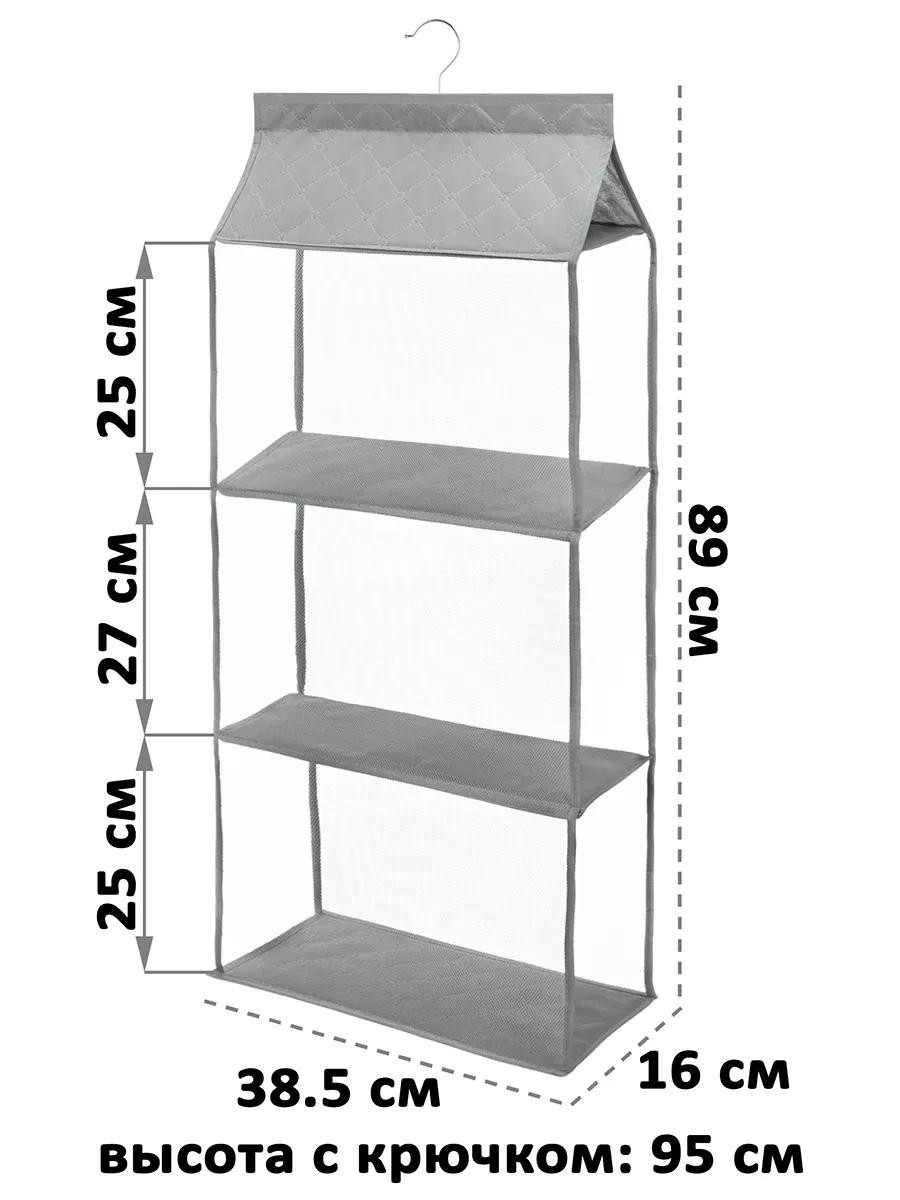 Подвесной органайзер серого цвета 38,5х16х89 см для хранения вещей поможет навести порядок в любой комнате вашего дома: гостиной, спальне и даже на кухне. Изготовлен из прочного нетканого материала, имеет крючок для подвешивания и 3 секции. Разместите универсальный органайзер в шкафу или на стене, чтобы экономно использовать каждый сантиметр пространства. Имеет плотные вставки (полочки) и прозрачные сетчатые стенки. Настенный органайзер складывается гармошкой и компактно хранится. Создайте дополнительные полки в шкафу благодаря этому тканевому многофункциональному органайзеру. Храните в отсеках сумки, зонтики или тапочки, повесив на стенку в прихожей. Сложите необходимые принадлежности: щёточки для обуви, пакеты, очки и зонты. Чтобы все необходимое было под рукой, можно повесить его как над столом, так и над кроватью и создать удобную систему хранения. Используйте как тапочницу или прикроватный стеллаж для хранения контейнеров с украшениями. Вешалка со стенками в виде сетки и полочками станет незаменимым помощником в организации порядка в квартире или на даче. В гардеробной подойдёт для складывания аксессуаров: шапок, перчаток, ремней и шарфов. В ванной можно использовать для хранения подгузников, памперсов, полотенец и другого белья и мелочей, например, хозяйственных щёток. В комнате или детской на неё можно сложить носки, одежду или мягкие игрушки. Складной держатель с отделениями позволяет удобно распределить вещи и быстро находить нужные предметы. Вертикальный органайзер позволит хранить вещи аккуратно и добавит уюта домашнему интерьеру. Разместите переносной органайзер с ячейками в коридоре, над столиком или в шкафчике и наслаждайтесь порядком и комфортом!