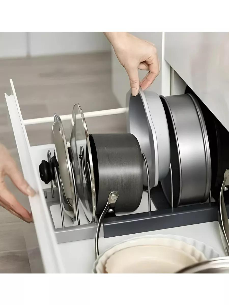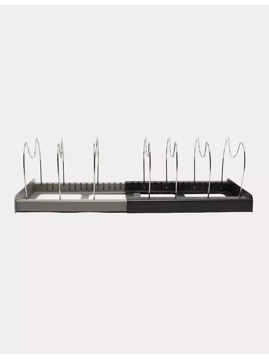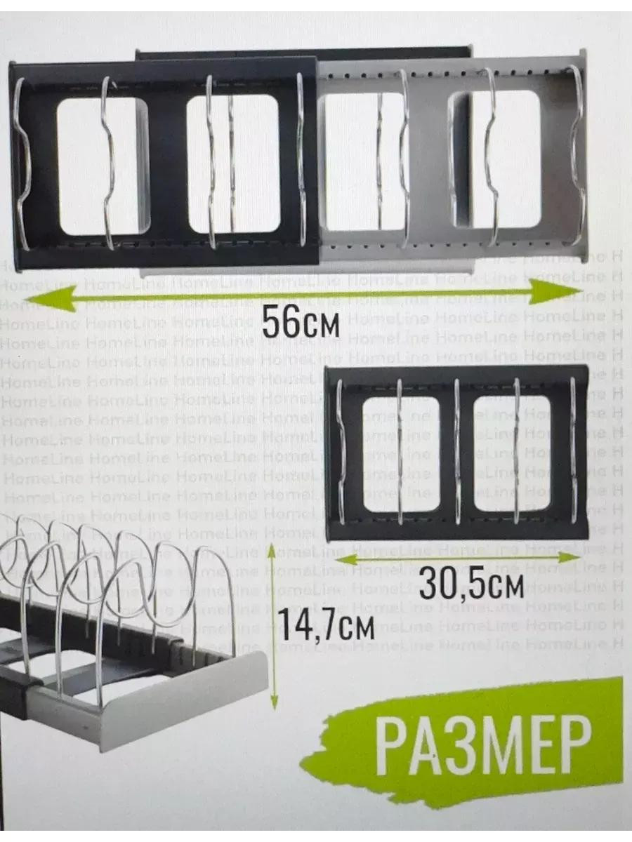 Органайзер сушилка для хранение кухонных принадлежностей в шкафу и на столешнице. Органайзер для посуды сэкономит очень много места на полках, по высоте подходит в кухонный шкаф и ящик. Подставка предназначена для крышек кастрюль, разделочных досок, сковородок, тарелок, посуды и всевозможного инвентаря. Можно использовать как сушилку после мытья или непосредственно для мытья посуды в посудомоечной машине (посудомойке). Подходит для всех типов крышек (с низким и высоким бортиком). Сушилка органайзер имеет 7 металлических разделителей перегородок с выемками под ручки крышек, для удобного размещения на полке и в шкафу. Пластмассовое выдвижное основание крепления раздвигается от 30 до 56 см. Держатель для крышек кастрюль и сковородок раздвигается, что дает большое преимущество, так как размер подстраивается под необходимое место на кухне, в шкафе или на полке. Купите данный держатель и он без всяких сомнений будет радовать Вас своей функциональностью! Прекрасное решение для подарка на новоселье, день рождения, 8 марта, на новый год, юбилей, свадьбу и годовщину, переезд, да и без повода просто так.