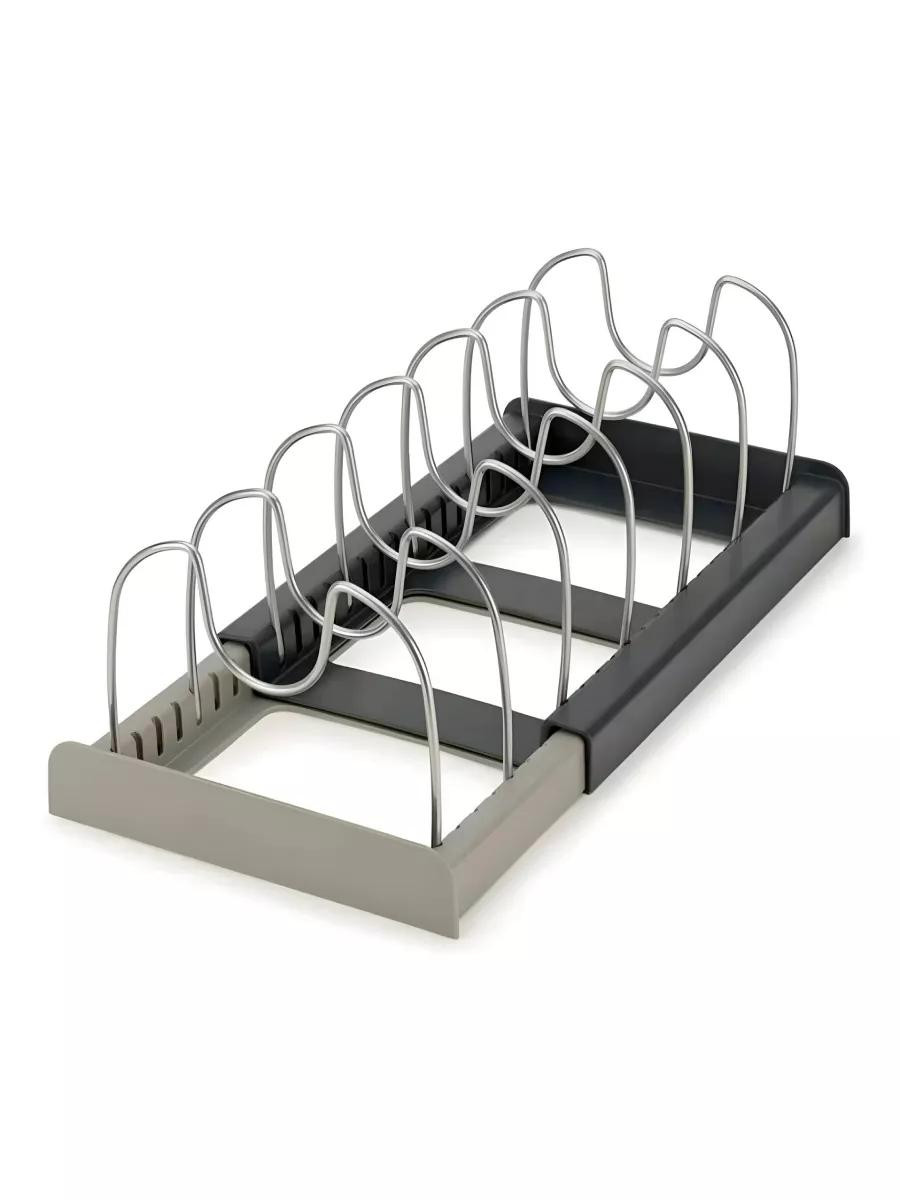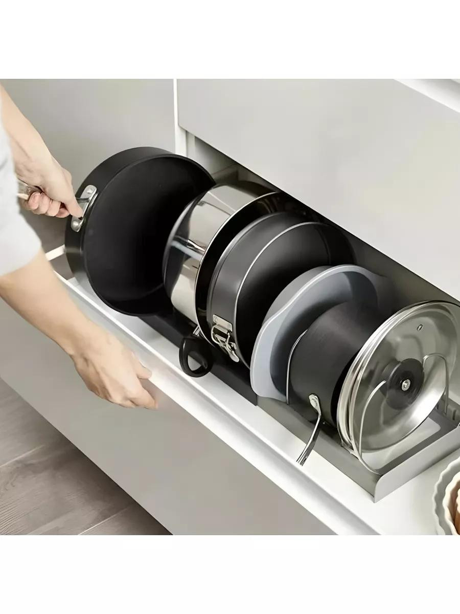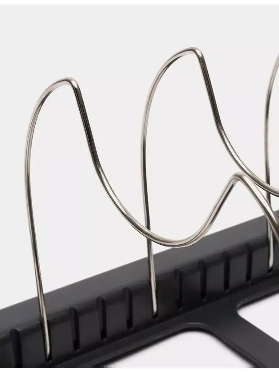 Органайзер сушилка для хранение кухонных принадлежностей в шкафу и на столешнице. Органайзер для посуды сэкономит очень много места на полках, по высоте подходит в кухонный шкаф и ящик. Подставка предназначена для крышек кастрюль, разделочных досок, сковородок, тарелок, посуды и всевозможного инвентаря. Можно использовать как сушилку после мытья или непосредственно для мытья посуды в посудомоечной машине (посудомойке). Подходит для всех типов крышек (с низким и высоким бортиком). Сушилка органайзер имеет 7 металлических разделителей перегородок с выемками под ручки крышек, для удобного размещения на полке и в шкафу. Пластмассовое выдвижное основание крепления раздвигается от 30 до 56 см. Держатель для крышек кастрюль и сковородок раздвигается, что дает большое преимущество, так как размер подстраивается под необходимое место на кухне, в шкафе или на полке. Купите данный держатель и он без всяких сомнений будет радовать Вас своей функциональностью! Прекрасное решение для подарка на новоселье, день рождения, 8 марта, на новый год, юбилей, свадьбу и годовщину, переезд, да и без повода просто так.