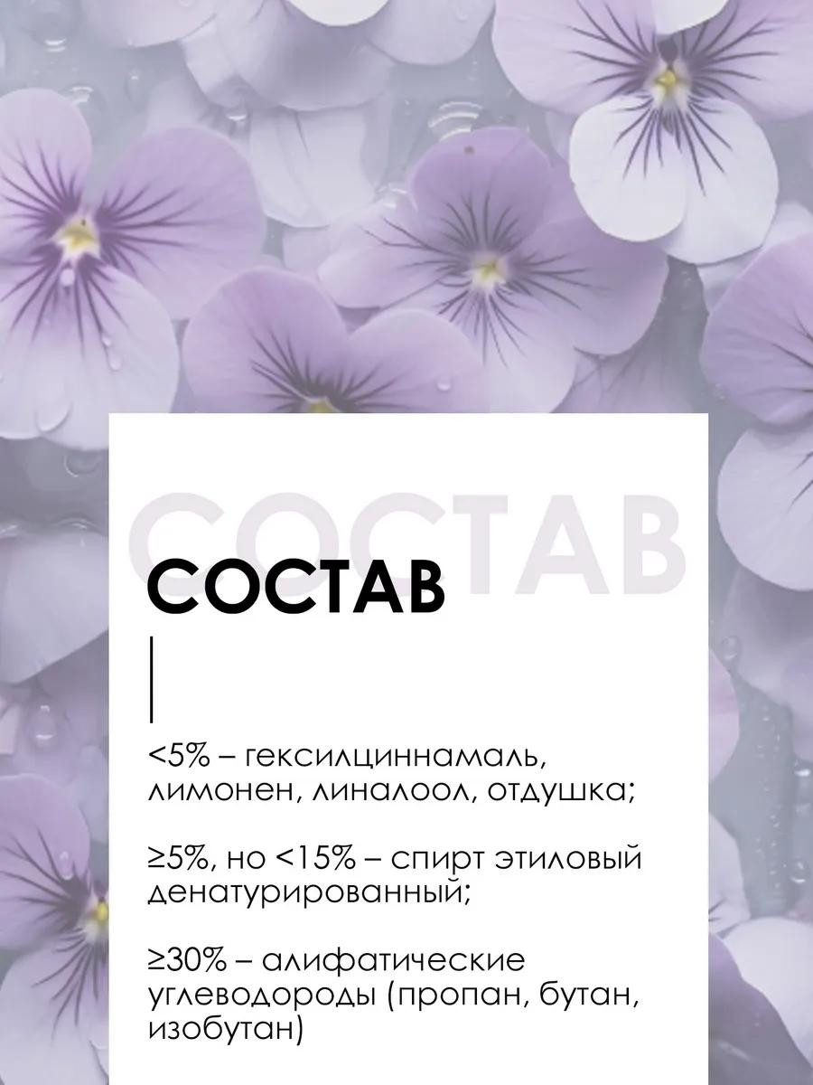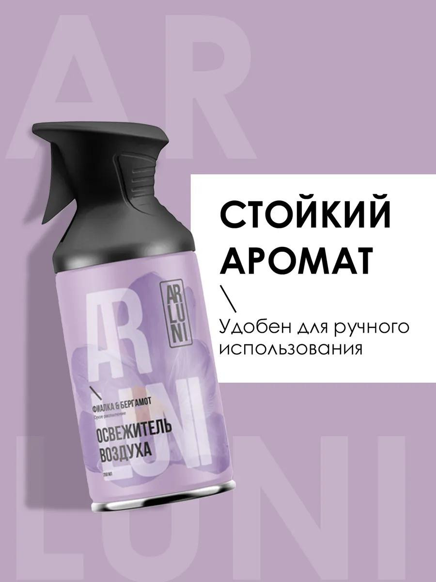 Освежитель воздуха Arluni с ароматом фиалки и бергамота — отличное решение для создания приятной атмосферы в вашем доме или офисе. Аромат фиалки с нотками бергамота — это свежий и изысканный букет, который окутывает вас нежным цветочным облаком, подчеркнутым деликатным цитрусовым акцентом. Он тонизирует и освежает, придавая ощущение легкости и радости. Распылитель предназначен для устранения неприятных запахов и ароматизации воздуха в жилых и нежилых помещениях, ванной комнате и туалете, помещениях для курения. Не содержит воды в составе, благодаря чему имеет «сухое» распыление, после которого в воздухе остается только запах и никаких водяных брызг. Средство не оставляет следов при попадании на стены и предметы интерьера в доме. Имеет насыщенный и стойкий приятный аромат, который надолго наполнит ваш дом свежестью и уютом и избавит от неприятного запаха: сигарет, унитаза, в шкафах. Ароматический спрей представлен в аэрозольном баллоне, поэтому вы можете сами регулировать интенсивность аромата сухим распылением вручную. Кроме функциональности, ароматизатор Arluni также отличается стильным дизайном, который станет элегантным дополнением к вашему интерьеру. Создайте уютное пространство с освежителем воздуха Arluni и дополните свою реальность.