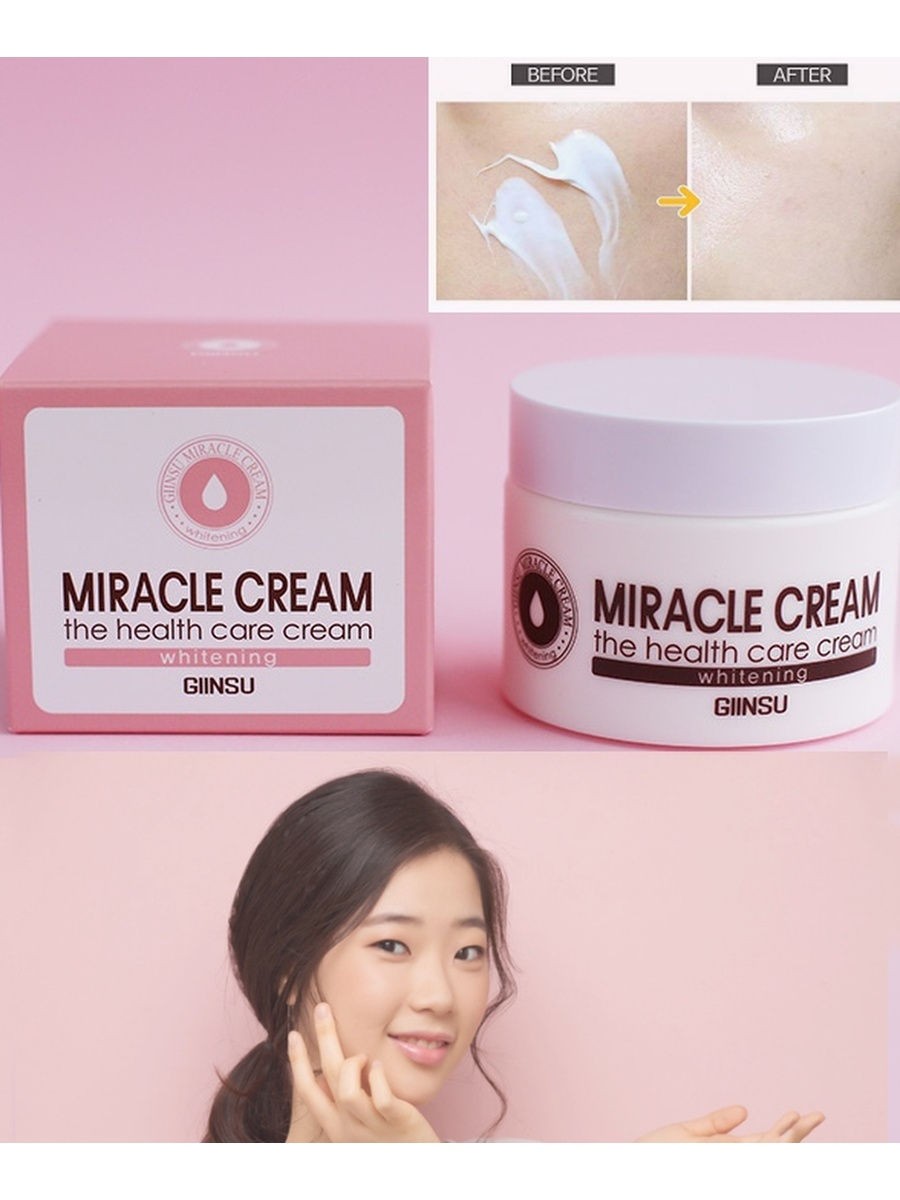 Мечтаете о красивой и сияющей коже? Miracle Cream от бренда Giinsu – идеальное решение для вас! Добро пожаловать в мир красоты и заботы о коже с нашим уникальным корейским кремом для лица, разработанным профессиональными брендами из Кореи - одной из лучших стран в области уходовых средств и косметики. Наш удивительный крем предоставляет комплексный эффект осветления и отбеливания против пигментных пятен, постакне и антивозрастных изменений. Данный крем имеет ночной и дневной режимы использования, позволяя вашей коже получать активный уход и увлажнение в течение суток. Особенно необходим крем для сухой кожи, которая нуждается в дополнительном увлажнении и питании. Гель для лица женский содержит натуральные ингредиенты, которые бережно ухаживают за кожей, делая ее мягкой и гладкой. В составе крем геля присутствует уникальный антивозрастной комплекс, который способствует восстановлению упругости кожи и сияния лица, делая ее более молодой и сияющей. Особый акцент сделан на отбеливающем эффекте, который помогает устранить пигментные пятна, а также способствует осветлению шрамов и покраснений после акне. Крем имеет легкую текстуру, которая легко наносится и быстро впитывается, не оставляя ощущения липкости. Для женщин с чувствительной кожей и аллергией наш крем является успокаивающим и предотвращает возможные раздражения. Легкий крем также эффективно осветляет тон кожи, устраняет зоны тусклости и шелушения, создавая идеальную основу для макияжа. Мазь может быть использована как база под тональный крем, обеспечивая долговременное сияние и равномерный тон кожи в течение всего дня. Корейский крем является универсальным средством для мужчин и женщин любых возрастов и для использования в любое время года. Для комбинированной и нормальной кожи, этот крем предоставляет надежный уход, поддерживая уровень увлажнения, а также способствуя процессу восстановления кожи после ежедневных внешних воздействий. Кроме того, он обладает антивозрастным и лифтинг-эффектом, делая вашу кожу упругой и молодой. Благодаря омолаживающему эффекту, он помогает уменьшить морщины и улучшить тон кожи. Приобретите наш крем сегодня и дарите вашей коже здоровье и красоту с восточной мудростью и уходом!