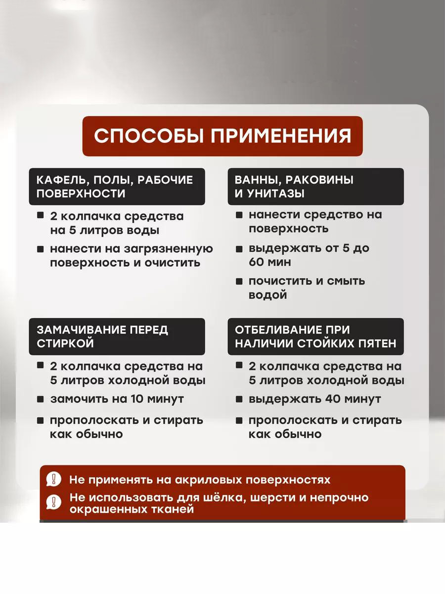 Назначение: отбеливание, чистка, дезинфекция