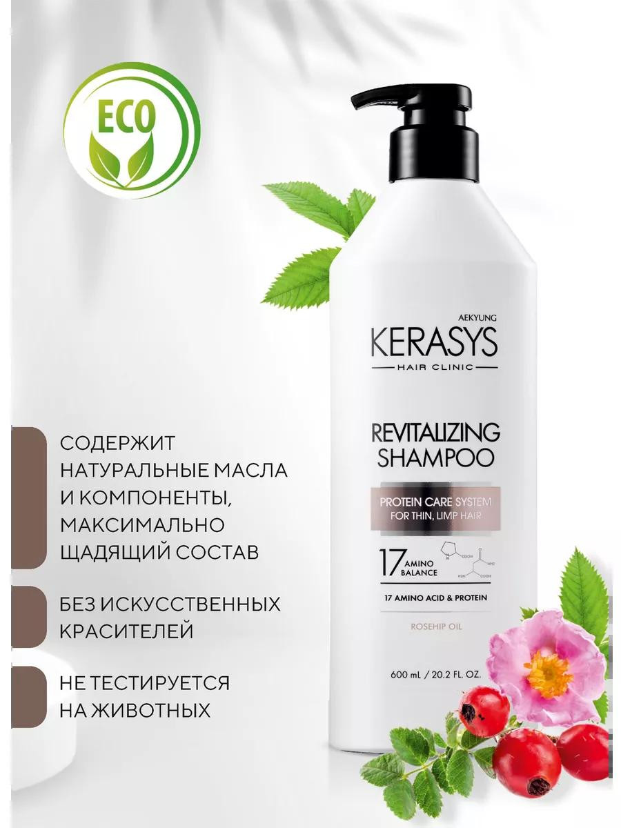 Действие профессионального витаминизирующего шампуня Kerasys направлено на восстановление красоты и здоровья тонких и пористых, ослабленных, жестких, сухих и поврежденных прядей, а также на поддержку оптимального состояния нормальных волос. Благодаря специально разработанной формуле с липосомами, в основе которой лежат натуральные ингредиенты и лечебные вещества, бьюти средство проникает глубоко вглубь клеток и обеспечивает увлажнение, интенсивное укрепление и уплотнение. Вы сразу увидите эффект восстанавливающего действия - локоны станут мягкими и гладкими, вернется прикорневой объем и блеск. В составе очищающей женской косметики Керасис из Кореи содержатся витамины А и Е, которые также улучшают состояние волос, насыщая клетки питательными веществами. Они делают пряди сильными и эластичными, борются с секущимися кончиками и стимулируют рост. Шампунь Керасус (Kerasus) имеет клинически доказанную эффективность, поэтому использовать его можно как дома в ванной и душе, так и в проф парикмахерских. Гигиеническое средство универсально и подойдет для мытья волос всех типов (в том числе вьющихся, волнистых и кудрявых).