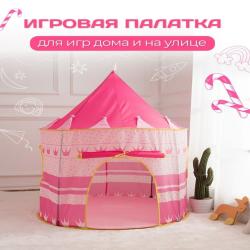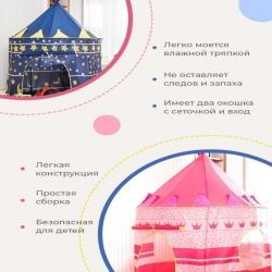 Палатка для детей игровая - прекрасный подарок не только для Вашего ребёнка, но и для Вас! Детский домик способствует развитию малыша. В этом своем мире ребенок учится быть самостоятельным. Он сам наводит порядок, самостоятельно решает, где расположить вещи, как встретить гостей, являясь хозяином, ребёнок сам будет нести ответственность свою игровую палатку, что позволит ему в игровой форме понять ценность вещей, необходимость ухода за своим жилищем. Просторная домашняя палатка помогает развивать воображение. В своем маленьком мире ребенок сможет психологически огородиться от стресса и большого мира, который его окружает, шатер поможет ему в этом. Игровой дом-шалаш поможет расслабиться и разгрузиться вашему ребёнку. Когда в доме есть палатка, вам не придется постоянно убирать за ребенком вещи для строительства убежища. Дом для детей уже построен. У ребёнка появится свой собственный укромный уголок для игр. Меньше разбросанных игрушек по дому, будьте уверены - они все будут в палатке. Дети с удовольствием используют игровой домик-палатку: для чтения, изучения уроков, рисования и других занятий. Палатка прекрасно подходит для игр дома и на улице. Шатер детский идеально подойдет для игр летом на даче. Наша игровая палатка легко разбирается и собирается. Установка палатки детской игровой происходит за считанные минуты. Игровой домик – три в одном выполнен из безопасных материалов. Материал Таффета 190Т: непромокаемый, способен быстро сохнуть, легко разглаживается в собранном виде. В сложенном виде палатка не занимает много места для хранения и имеет хорошо продуманную конструкцию. Просторная игровая палатка может вместить несколько детей. Детская палатка подходит как для девочек, так и для мальчиков. Характеристики: Материал палатки: Таффета 190Т Цвет: Синий Комплектация: Палатка - 1шт. Дуга - 4шт. Сумка - 1шт. Инструкция - 1шт. Диаметр: 105 см. Высота: 135 см. Размер окна: 25х35 см.