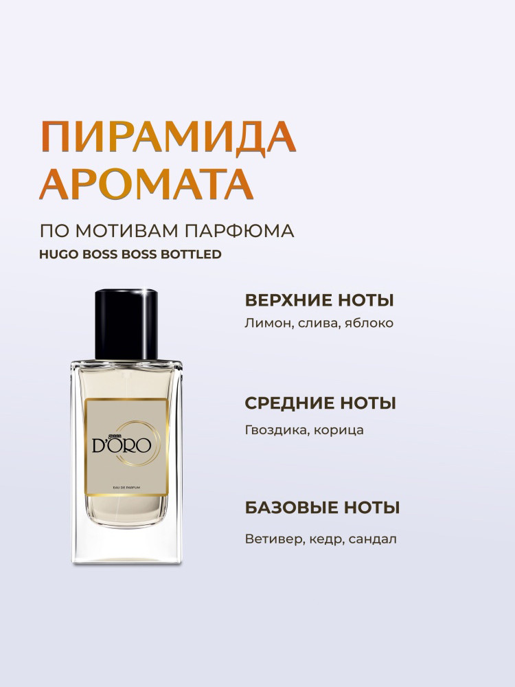 D'ORO MEN — это стильный и элегантный аромат, который сочетает в себе теплоту древесных нот с бодрящими фруктовыми и пряными аккордами. Он создан для современного мужчины, который ценит классический стиль и уверенность в себе. Этот аромат идеально подойдет как для деловых встреч, так и для повседневного использования.