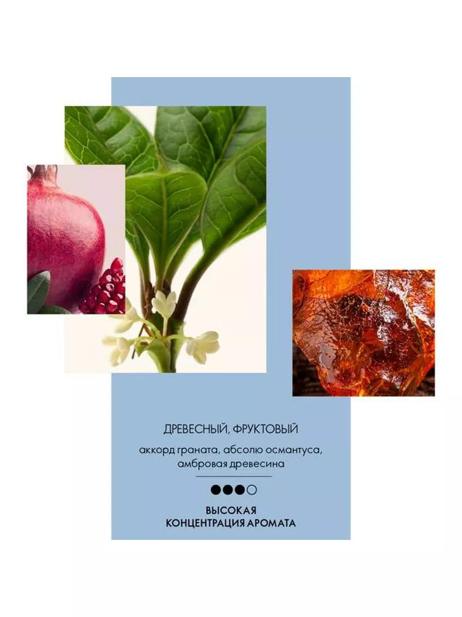 Роскошный, женственный древесно-фруктовый аромат, в котором сплелись воедино сочные зерна граната, сверкающие на солнце от капель росы белые цветы и глубокие древесные ноты – все для того, чтобы раскрыть поистине божественную сущность парфюма.