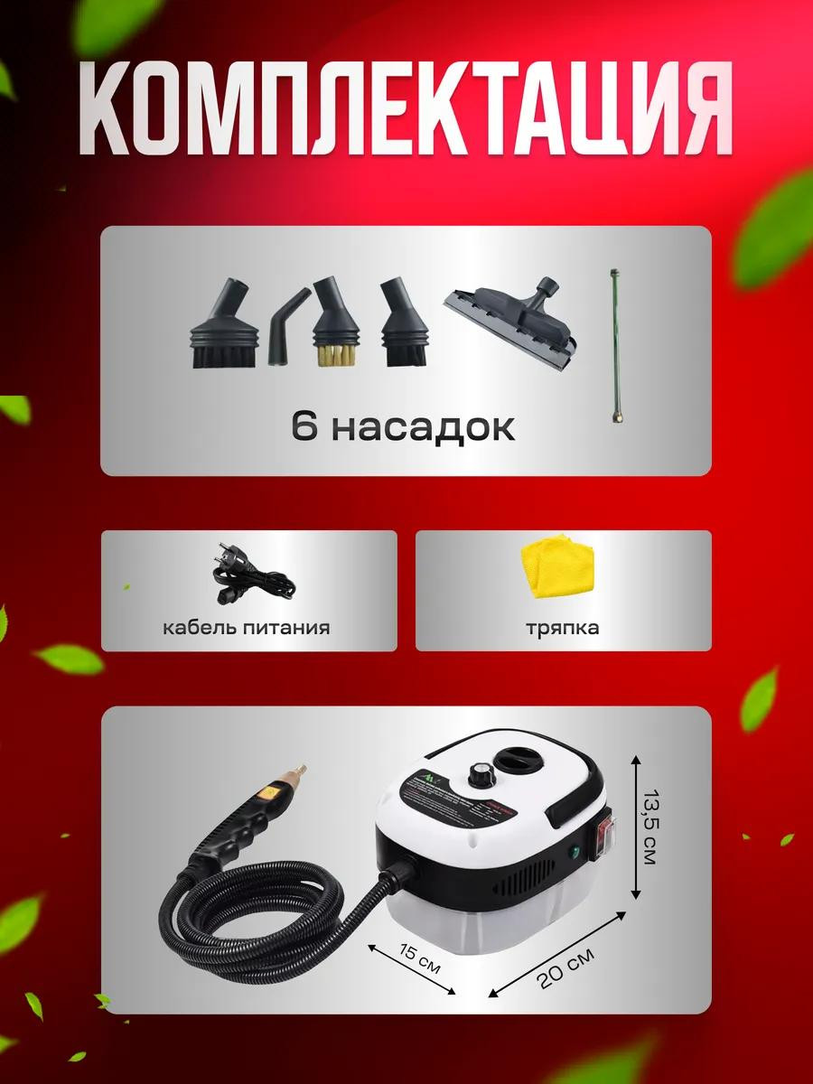 | Комплектация | пароочиститель; провод; тряпочка насадка; 6 насадок; шланг универсальный |