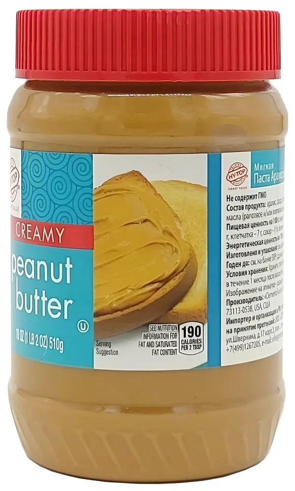 Паста арахисовая HY-TOP (США) Мягкая 510г - это полезное и питательное лакомство. Приготовленная из обжаренного арахиса, содержит большое количество витаминов, минералов и элементов. Мягкая арахисовая паста HY-TOP идеально подойдёт для приготовления домашних бутербродов, добавления в каши, творог или мороженое. Она также станет прекрасным дополнением к выпечке и десертам, придав им неповторимый вкус и аромат. Отличное дополнение к утреннему завтраку. Арахисовая паста HY-TOP мягкая — это нежное и ароматное лакомство, созданное из отборного арахиса, выращенного на плантациях США. Благодаря особой технологии производства и использованию натуральных ингредиентов, эта паста обладает неповторимым вкусом и полезными свойствами.