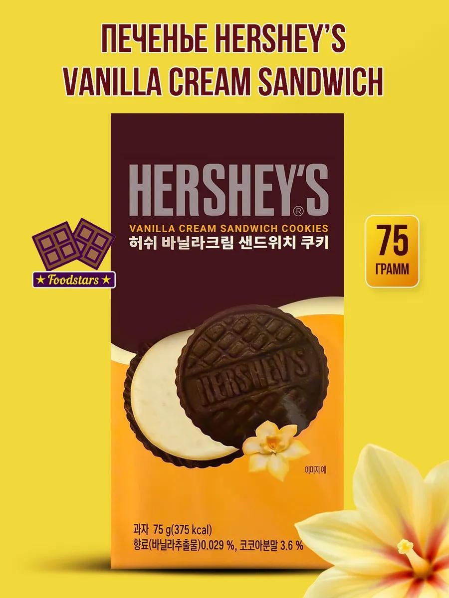 Два тонких темных шоколадных коржа с фирменным тиснением “HERSHEY’S”, между которыми расположена щедрая прослойка нежного ванильного крема. Яркий вкус ванили гармонично оттеняет шоколадную основу. Компактная упаковка позволяет взять печенье с собой — отличный снэк к кофе или молоку.