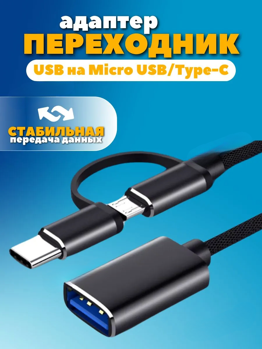 Переходник OTG 2 в 1 : USB Micro USB-Type-C представляет собой многофункциональный адаптер с двумя типами разъем. С помощью этого компактного аксессуара вы сможете забыть о неудобствах с разными адаптерами. OTG переходник позволяет подключать к смартфону или планшету флешку, клавиатуру и другие периферийные устройства с USB-портом. Больше не придется перекидывать файлы с внешнего диска на ПК, а затем на телефон - все можно сделать в одно движение! Но важно помнить, что OTG адаптер работает только с поддерживающими функцию устройствами Android (проверить совместимость и наличие функции OTG можно в настройках андроид девайса). Переходник OTG USB Type-C и microUSB- это идеальный вариант для тех, кто хочет упростить свою повседневную жизнь и работу, сохраняя при этом высокую эффективность и производительность. Особенности: • Для устройств Android; • С функцией OTG передачи данных (для устройств с поддержкой OTG); • (Female) USB, (Male) Type-C и Micro USB;