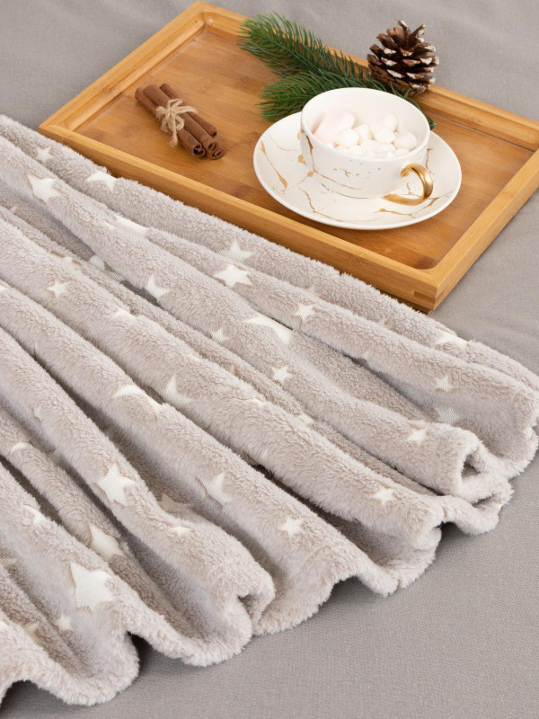 Плед с ярким звездным узором — это отличный подарок на праздники и незаменимый элемент для уютных зимних вечеров.