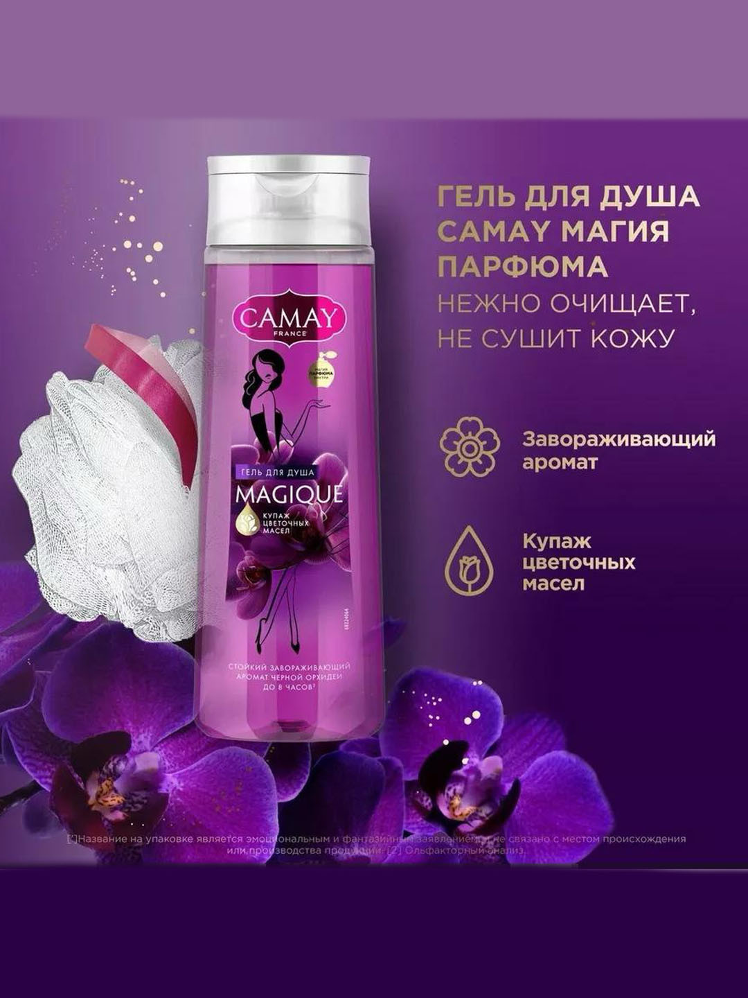Насладитесь чарующей магией аромата с Подарочным набором Camay Magique для женщин Парфюмированный гель для душа обогащен цветочными маслами, которые вместе с активными ингредиентами делают кожу гладкой и благоухающей сразу после душа. Имеет чувственный завораживающий аромат с нотками редкой черной орхидеи и насыщенными аккордами темных цветов. Сложный и манящий аромат содержит особую технологию Fragrance Pearls, которая позволяет ему оставаться на коже до 8 часов после душа. Отличное решение для жарких летних дней, когда от насыщенного аромата духов или туалетной воды становится просто некомфортно. Для удобства в комплекте предусмотрена мочалка.