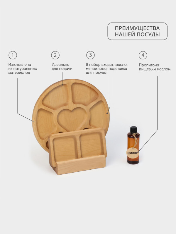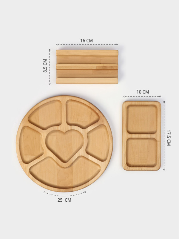 Подарочный набор деревянной посуды Adelica: Менажница 6 секций, Менажница 2 секции, Подставка - Изысканность и Функциональность для Вашего Стола!