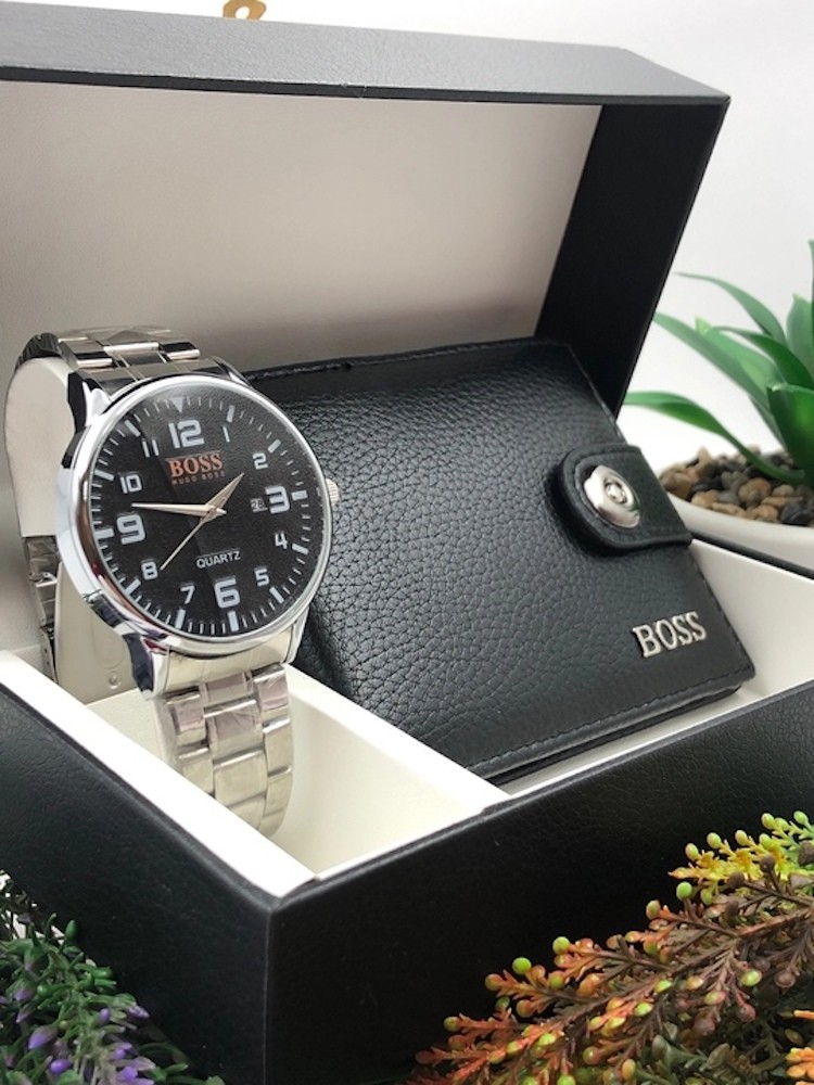 Подарочный набор Мужских Часов BOSS, часы + кошелёк