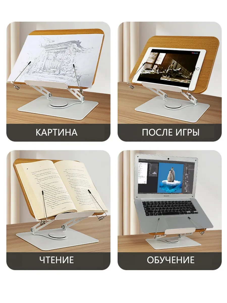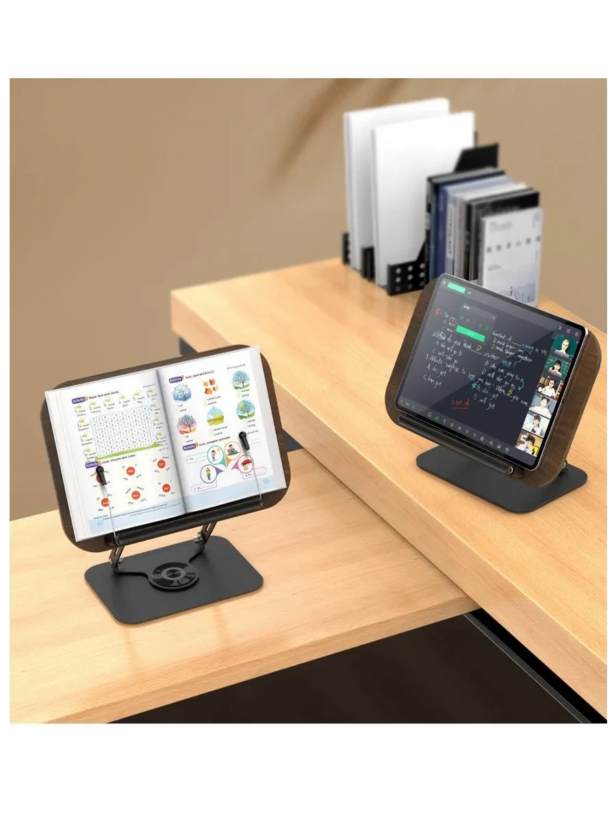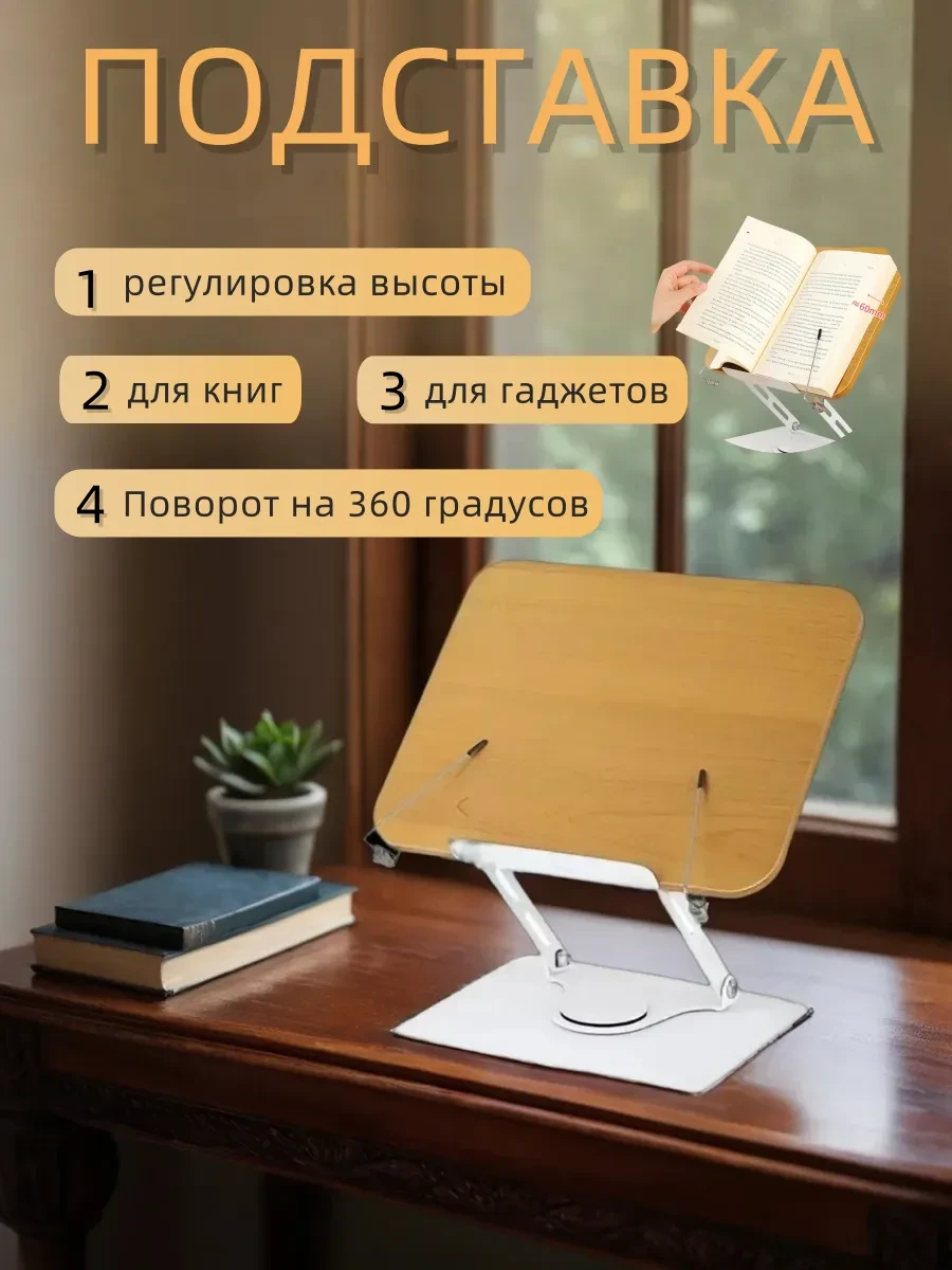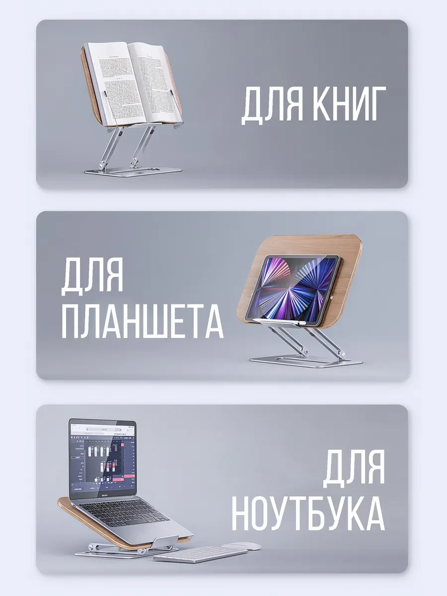Эргономичная подставка для книг и ноутбуков из алюминия с деревянной отделкой – удобное и функциональное решение для учебы, работы и чтения. Она надежно фиксирует книги, учебники, планшеты и ноутбуки, обеспечивая комфортное положение и снижая нагрузку на шею и спину. Регулируемый угол наклона позволяет настроить подставку под удобный обзор, что особенно важно при длительной работе за компьютером. Компактные размеры 34x23 см делают ее удобной даже для небольшого рабочего стола, а прочная металлическая основа гарантирует устойчивость даже для тяжелых устройств. Эта универсальная подставка подходит для студентов, школьников, офисных сотрудников и всех, кто ценит комфорт и заботится о своем здоровье. Отличный выбор для тех, кто ищет качественную подставку для ноутбука, держатель для книг или удобную подставку для чтения.