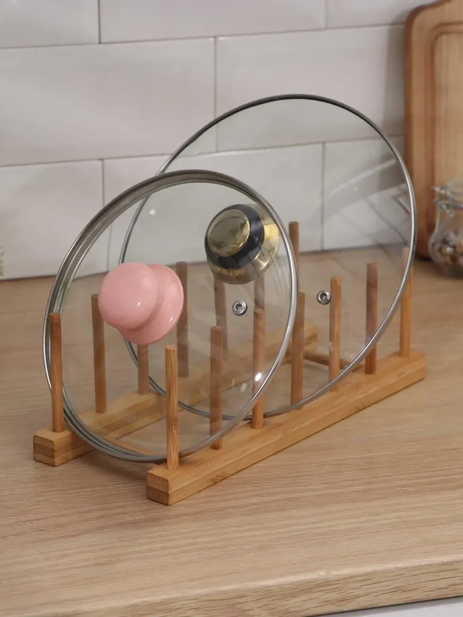 Эта компактная и функциональная подставка поможет аккуратно хранить разделочные доски и крышки от кастрюль, поддерживая порядок и экономя место.