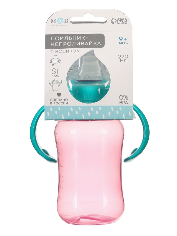 Поильник-непроливайка M&B BASIC, 270 мл, розовый, с 9 мес.