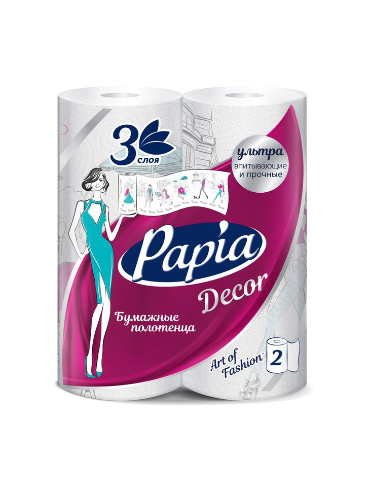 Бумажные полотенца "Papia" Decor 3 слоя, 2 шт. — премиальное решение для ухода за домом, сочетающее в себе элегантный дизайн, высокую прочность и отличную впитываемость: