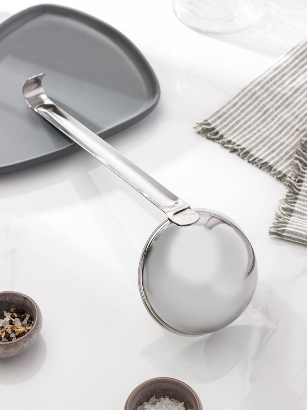 Эргономичный половник объёмом 250 мл создан для удобной раздачи каш, супов и других жидких блюд. Цельнометаллическая конструкция из нержавеющей стали гарантирует прочность, долговечность и простоту в уходе. Классический дизайн и удобная ручка с крючком позволяют подвешивать изделие для хранения.