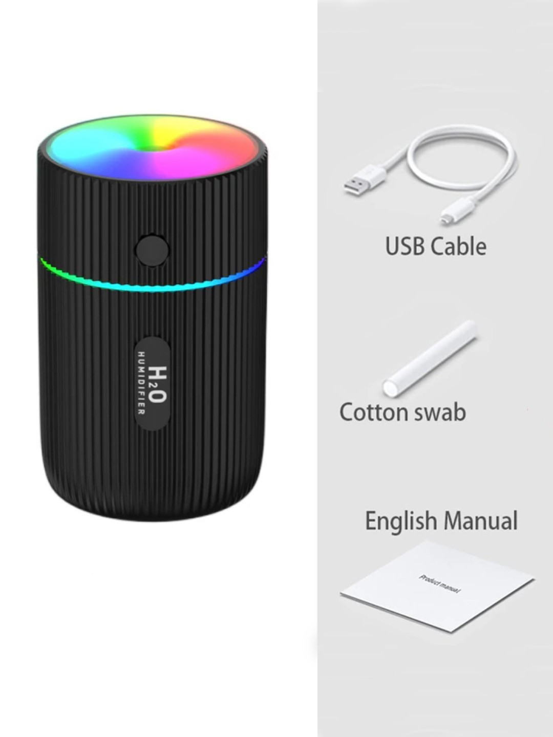 Увлажнитель воздуха - портативный мини-увлажнитель на 220 мл, удобно переносить и брать с собой. Увлажнитель идеально подходит для путешествий в автомобиле, спальни, офиса и детской. Питание увлажнитель воздуха ультразвуковой получает через кабель USB. Мини увлажнитель воздуха можно использовать, как ночник увлажнитель, он бесшумный и работает в двух режимах: беспрерывный пар в течение 4 часов и с небольшими интервалами в течение 8 часов. USB подсветка осуществляется в белом или цветном переливе, а так же её можно отключить. Габариты увлажнитель 68 Х 115 мм. Производительность увлажнитель воздуха составляет 40 мл/ч, резервуар вмещает 220 мл, что хватает до 8 часов работы. В комплект входит запасной фильтр для увлажнителя. При отсутствии воды ультразвуковой увлажнитель воздуха переходит в автоматическое отключение. ПЕРЕД ПЕРВЫМ ЗАПУСКОМ ФИЛЬТР ДЛЯ УВЛАЖНИТЕЛЯ НЕОБХОДИМО ОБИЛЬНО НАМОЧИТЬ ВОДОЙ!
