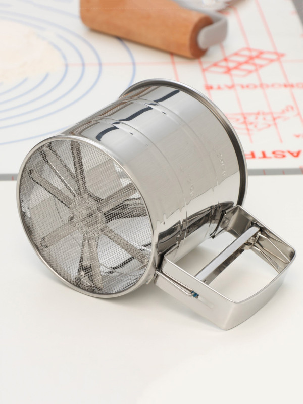 Идеально подходит для просеивания муки, какао, сахарной пудры и других сыпучих продуктов.